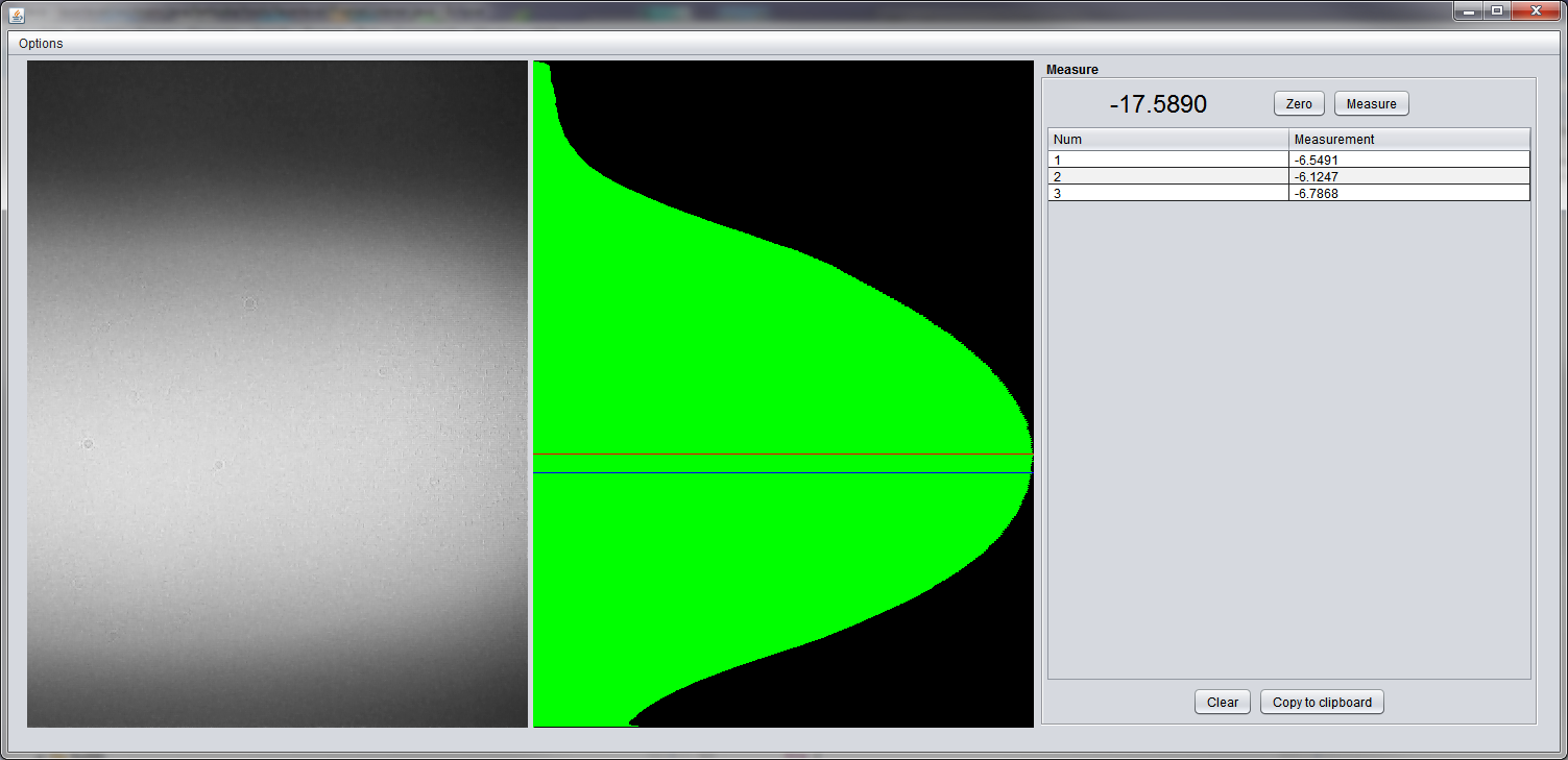 So it will now allow you to record a bunch of measurements against a particular zero, and you can export these to the clip board for pasting into excel or whatever. It will also allow you to average the samples used in taking a measurement, this is set in the preferences and defaults to 10. Remember once you have calibrated it you can put in the scale per pixel so you get real units displayed and measured rather than pixels.