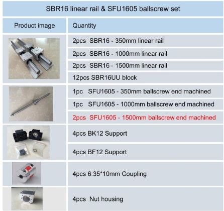 2pcs SFU1605- 1500mm ballscrew with ball nut* (BK12/BF12 end machined)