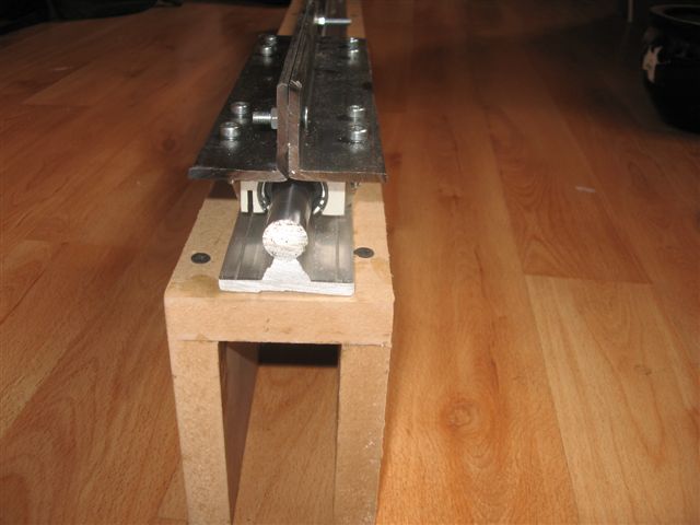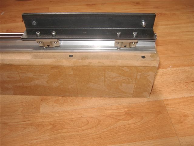 supported rail and bearings , stepper motors arrived from zapp ( thanks gary) so i made up two carridges and mdf box (still to screw and glue ribs inside box) supported rail will be bolted to mdf box , box will be bolted to base . that gives me 200mm from base to carridge , should keep x and y axis close together