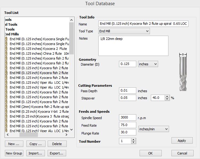 2. These numbers also work for engraving /v bits/. However for bits with included angle 45 and 30 degree is better the feedrate to be 25% slower, cause will easily brake tips. Same is for thinner than 1/8 bits or long bits.