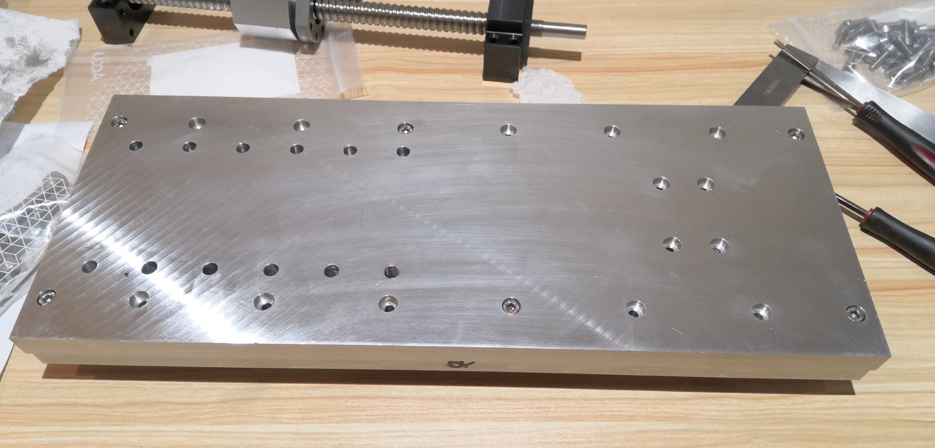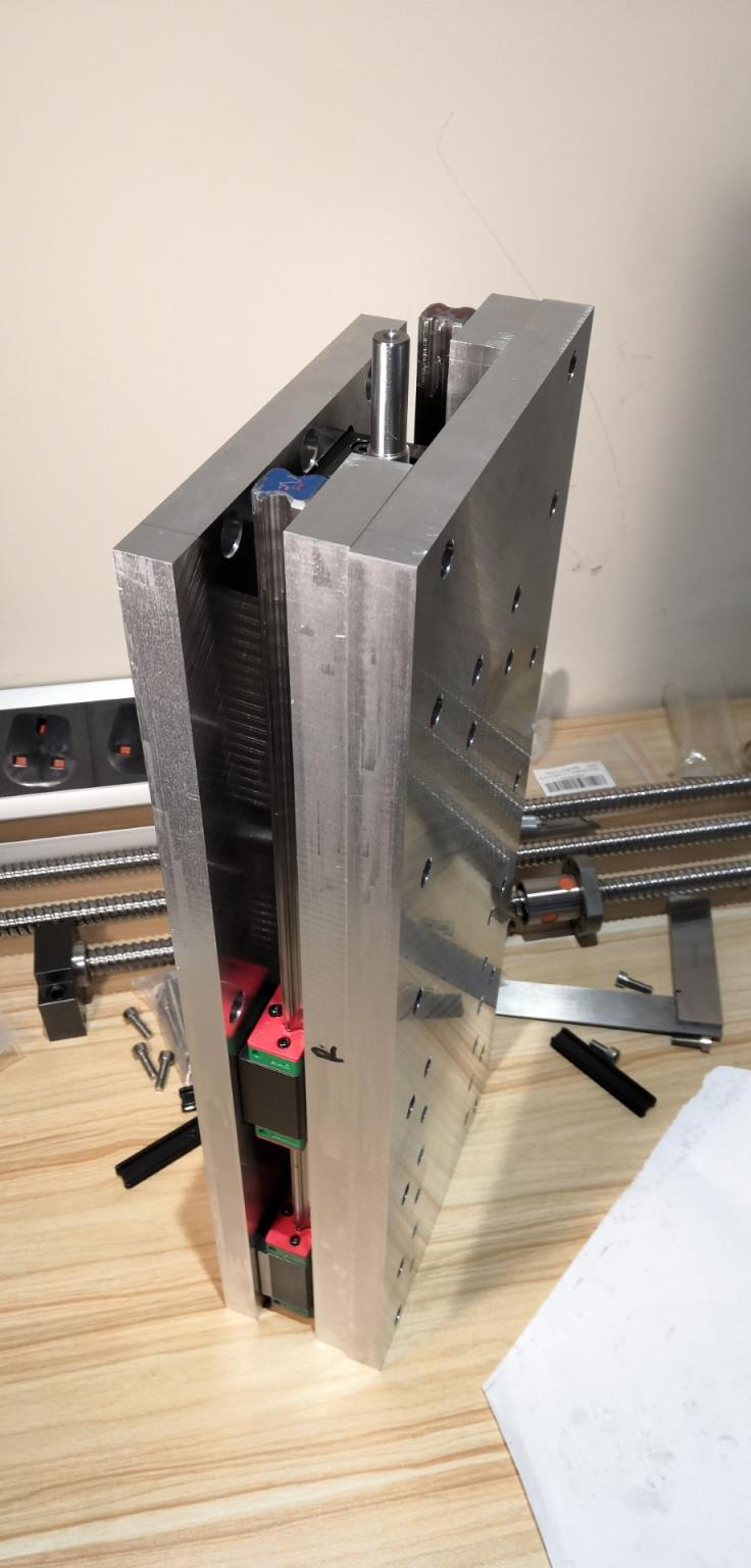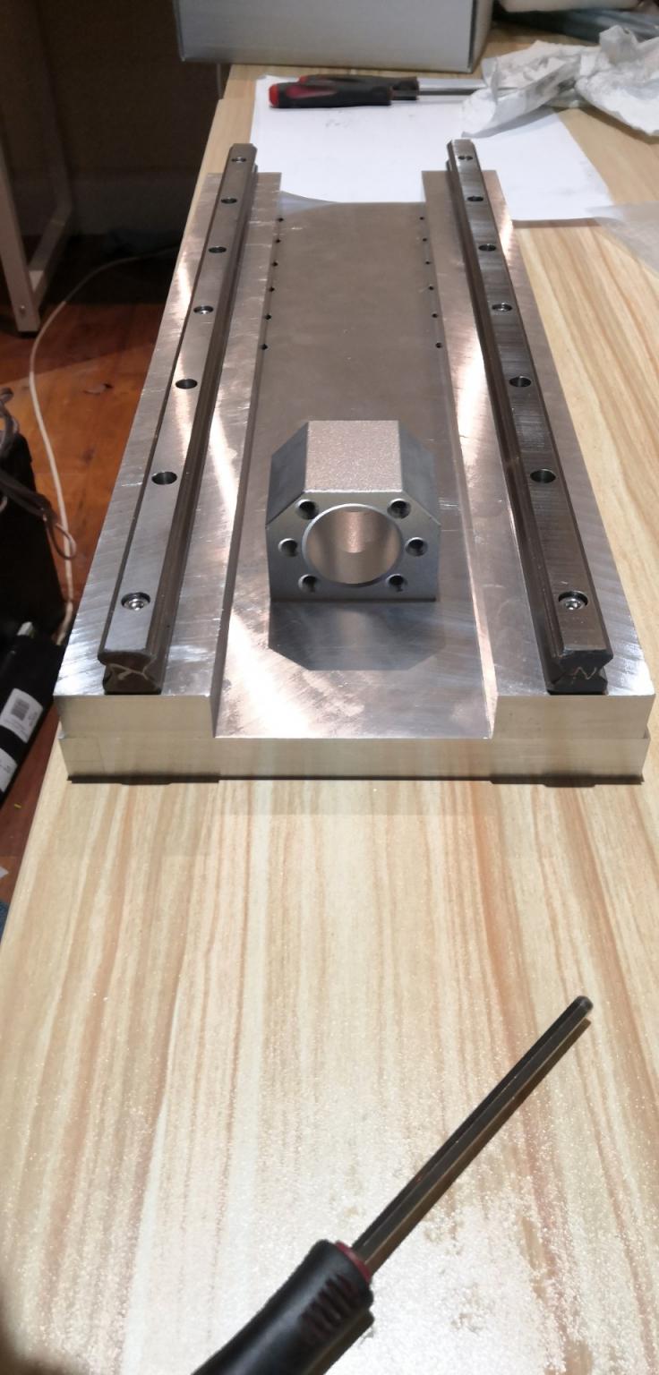 Finished the Z back plate so have now assembled the Z. Everything fits perfectly. All 4 long edges of the large front and back plates were milled in a single fixture so these will all be reference edges for aligning the rails and also tramming the Z on the gantry.