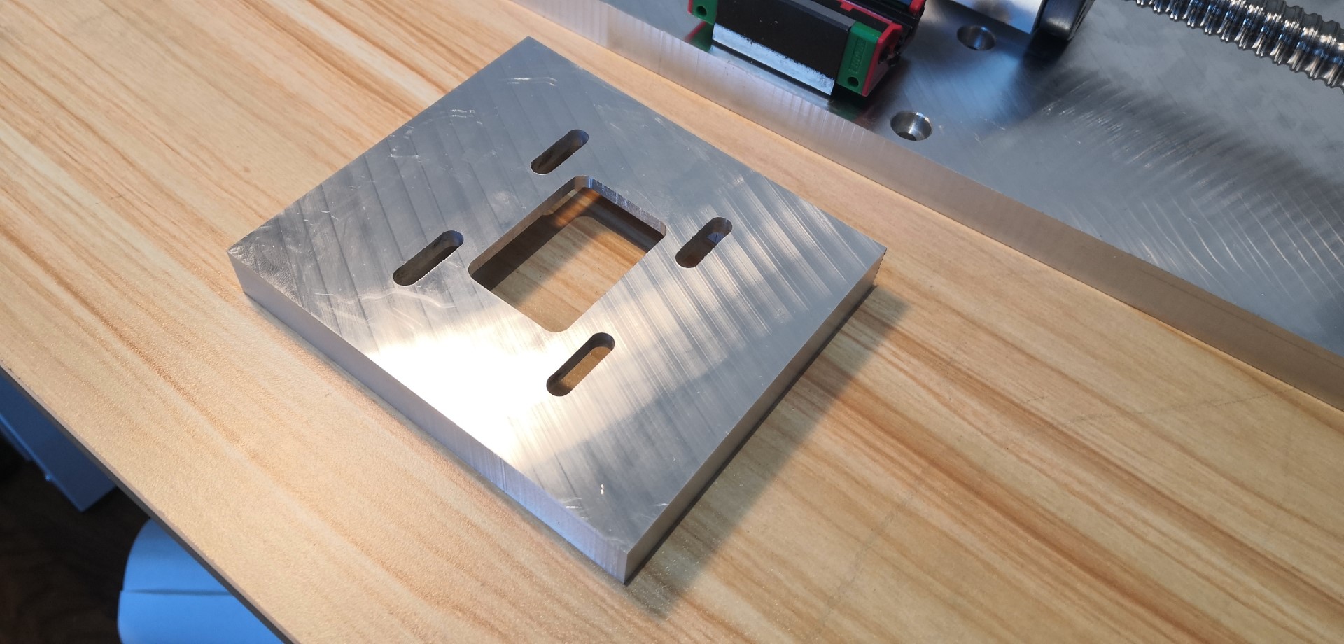 Pockets for the ballscrew mounts, these weren't perfect were supposed to be 1mm deep, infact 1.28mm so will need a thin shim between front plate and ball nut holder. TBH ballnut holder is not a precision item, rather it is a cast lump, so probably would have needed shimming anyway.