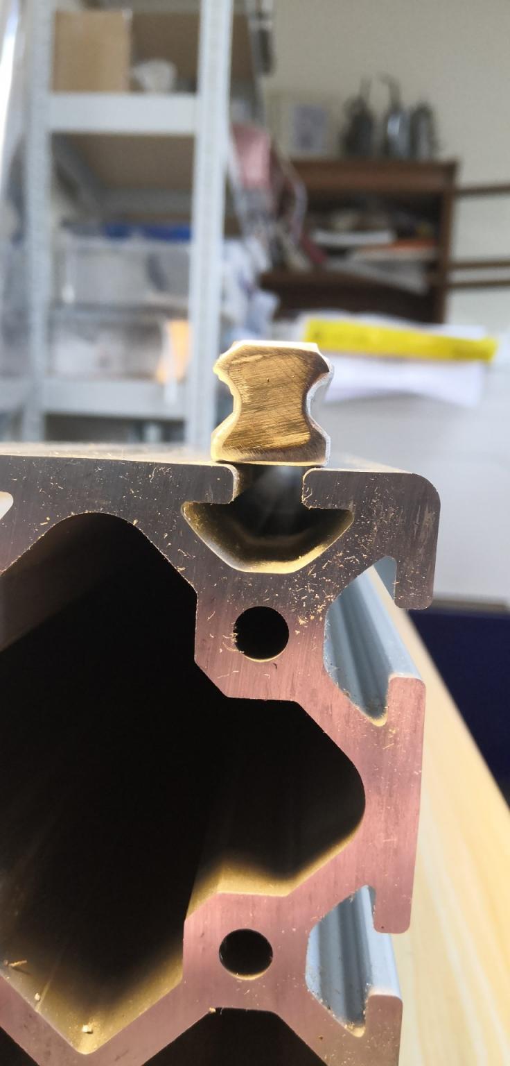 I initially wanted to fix the rail to the centre however this does increase the moment between the Y bearing and the Z plate by 20mm which may counter the increased stiffness from the firmer rail mounting.Then again the centre of this extrusion will be stiffer than either slot as it i supported equally whereas the slots are supported on one side by the unsupported corner. No idea really.