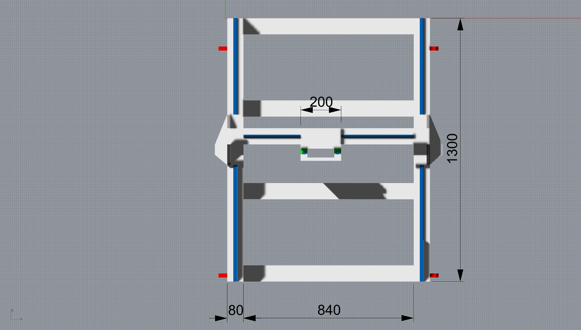 The (red) ball nut holder assembly will be adjustable up and down and if I make the gantry a few mm wider it will allow me to shim the ball screw supports off the steel frame to get the screws properly aligned, making the absolute length of the gantry beam non-critical.On my last machine I didn't have enough adjustment to align the X ball screws properly and it was a bit of headache to sort.
