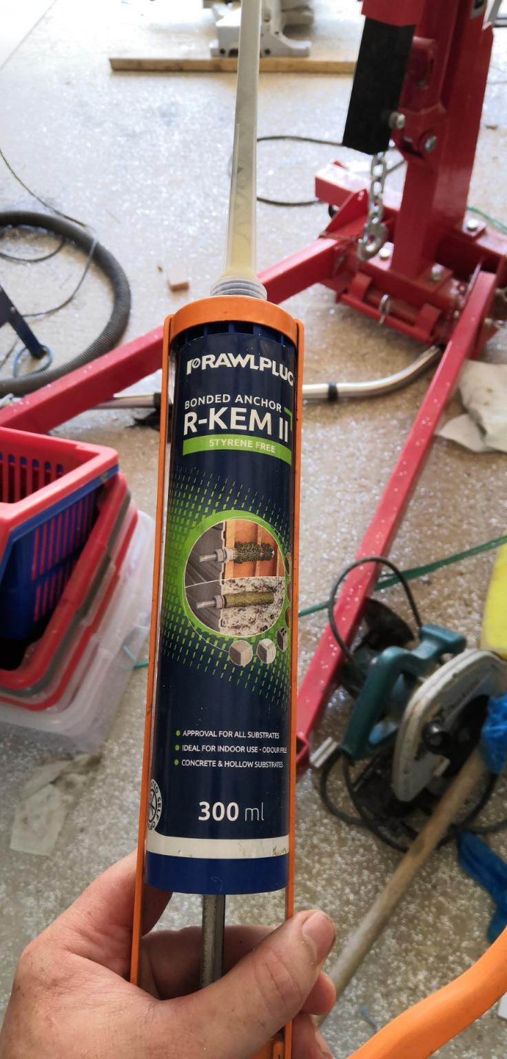 The rear cross member and the outer edges of the other cross members that did not have the milled shim were done as follows. I laid some narrow strips of closed cell self-adhesive glazing rubber either side of each bolt hole. Then I re-placed the bed and tightened the central set of bolts down hard onto their milled shims. I then indicated the entire bed adjusting the outer bolts to zero, the glazing rubber provided a bit of resistance to bias the bed plate high so the bolts had something to tension against. Finally I got under the machine and injected some construction resin into the gap, this set hard in a few minutes as it is so hot today, it is basically bondo in a cartridge.