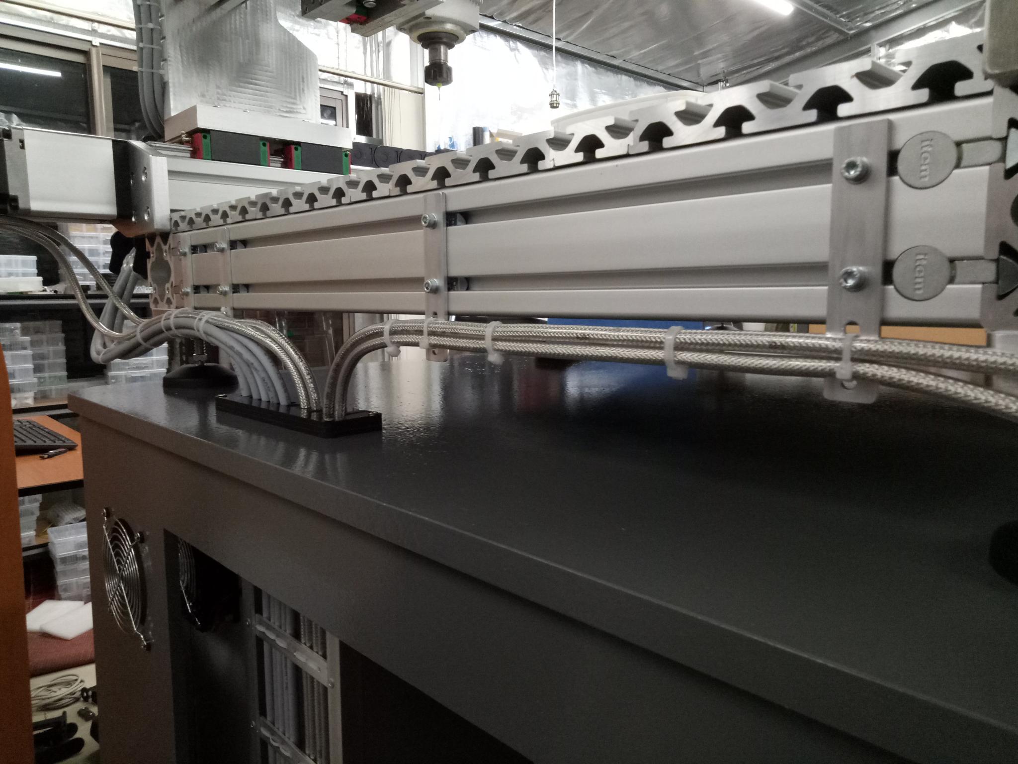Thanks, I am curious how you joined the extrusions. For my 3d printer I tapped the ends of of the exrusion and used bolts to clamp them together. I then braced the corners with plates underneath. Like this....