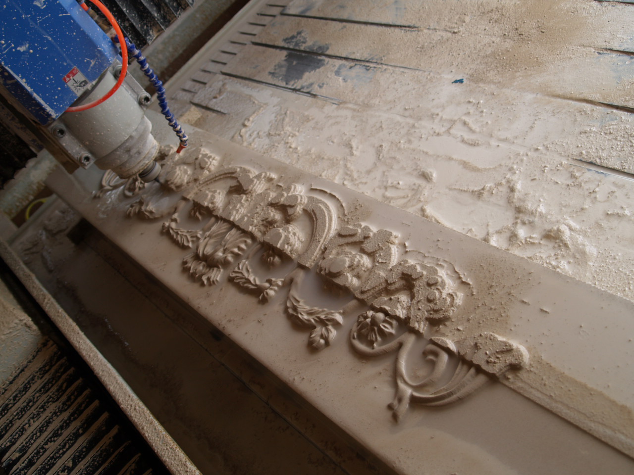 For the different stone, granite, marble, Stone you can use Diamond tools for edge work, roughing out and levelling, Carbide for profile cuts, cutting text in Granite you use PCD (poly crystal diamond) for marble you use PCD or carbide.