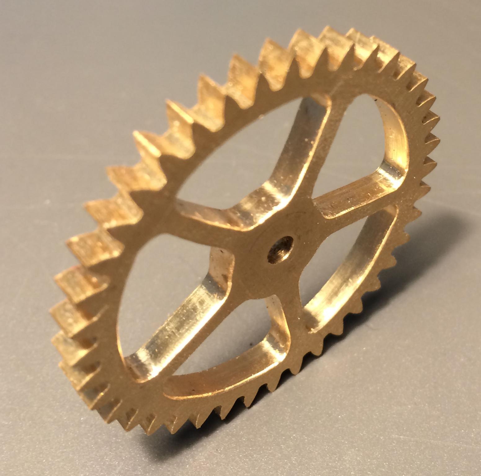 Note: only the spokes were done on the CNC I cut the teeth on a manual mill with a DIY digital dividing head.