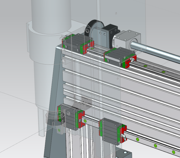 - Same servo motor brackets, BK/BF bearing spacers and ball screw nut housing concept are used as in the X-axis. Commonality and re-usability is the goal here.