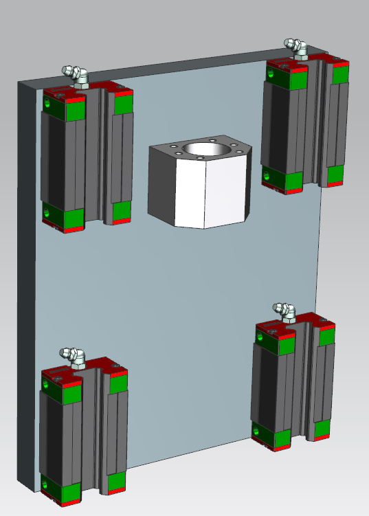 - 20x200x240mm aluminium front plate, onto which the HIWIN narrow guide carriages and ballscrew nut bracket DSG16H are mounted.