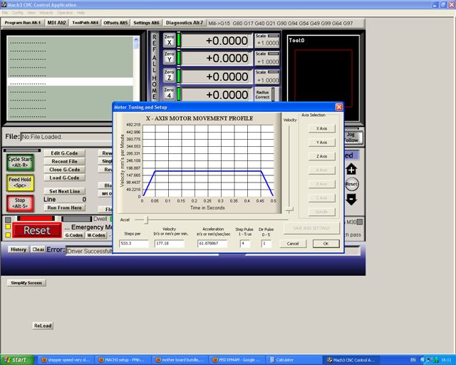 It is the velocity and acceleration figures that adjust the speed, what are they set to?