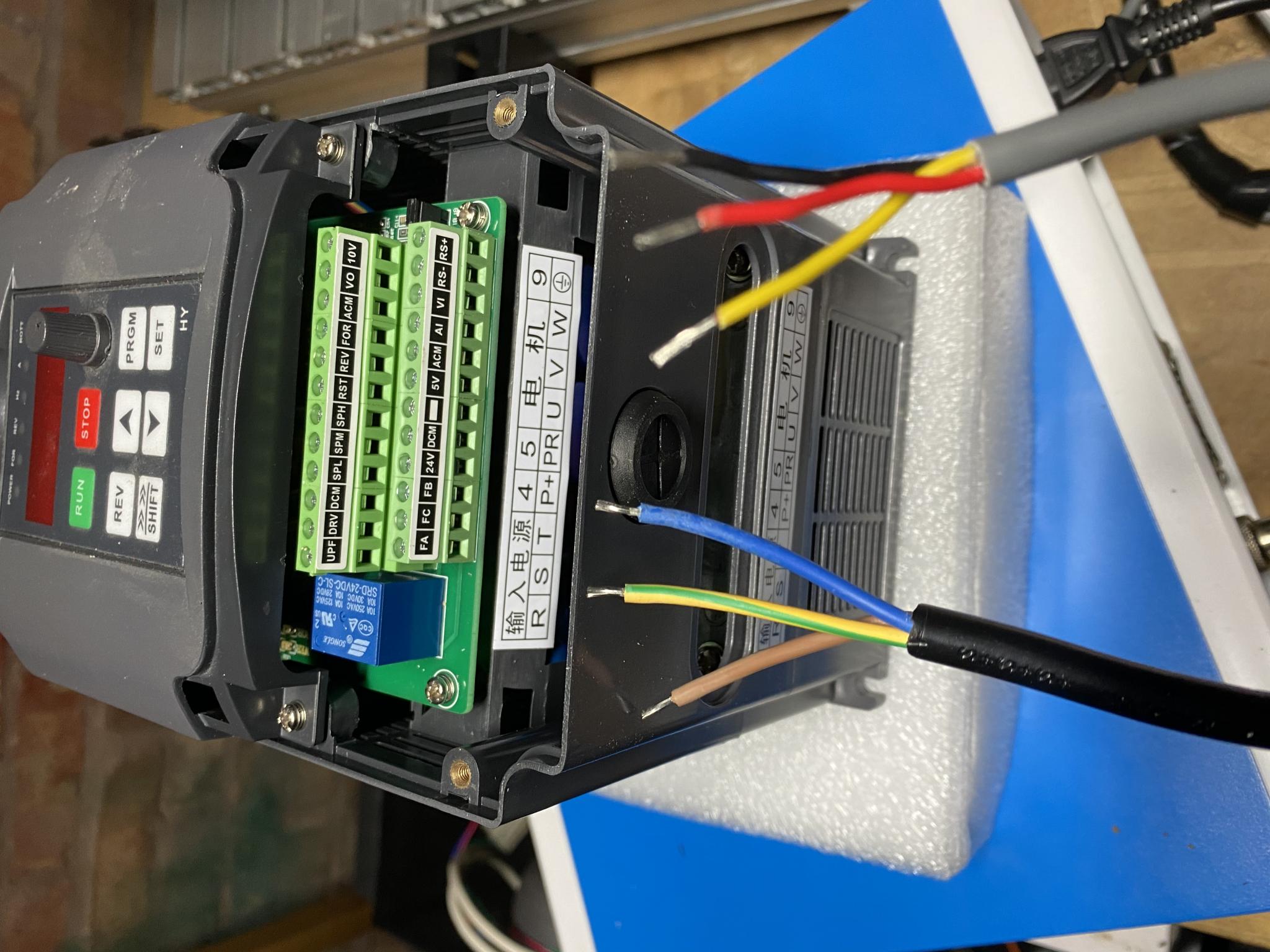 Hello, I’m trying to set up my 6040 and I’m having problems with the VFD. I’m hoping you can help. I don’t have a manual and I have looked at some videos but can’t figure it out. I have figured out the power input wires(blue/brown/yellow greenish) but know I have the spindle wires to connect up. Some videos say I need to earth it (which I don’t know how) and others just connect up the three wires(UVW) I’m a moron at electrics. Any guidance would be greatly appreciated. Thank you