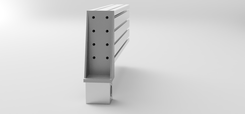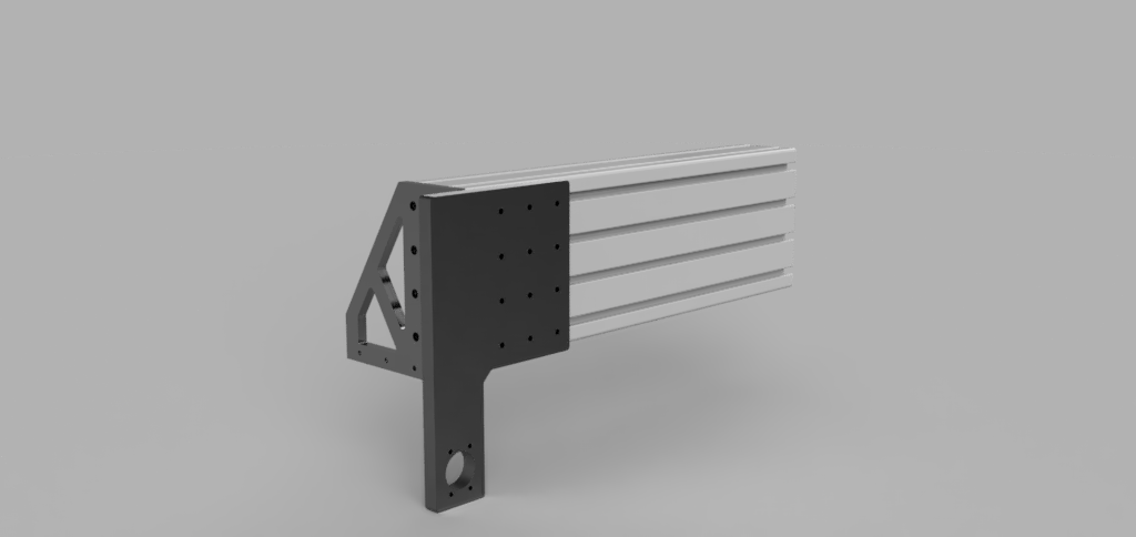 As a result I've needed to redesign a few parts though. As per Jazz suggestion I've added a new bracing for the gantry which will tie in to the Y axis linear bearing plates. This part only braces towards the back side of the gantry, as the new ball-screw connection will be made to the front side via a plate as shown below. I might figure out something for the front too at a later date.