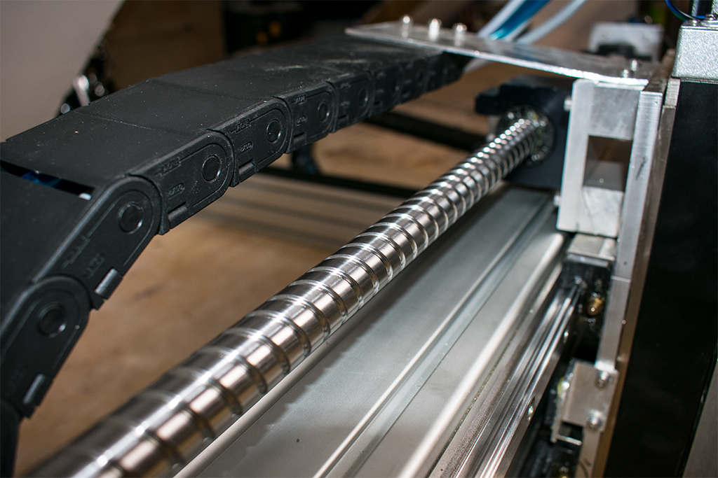 I have a Ground NSK ball-screw on the X axis, positioned on the top of the extrusion. I chose to do that as I wanted to get the Z axis as close to the rails as I could.