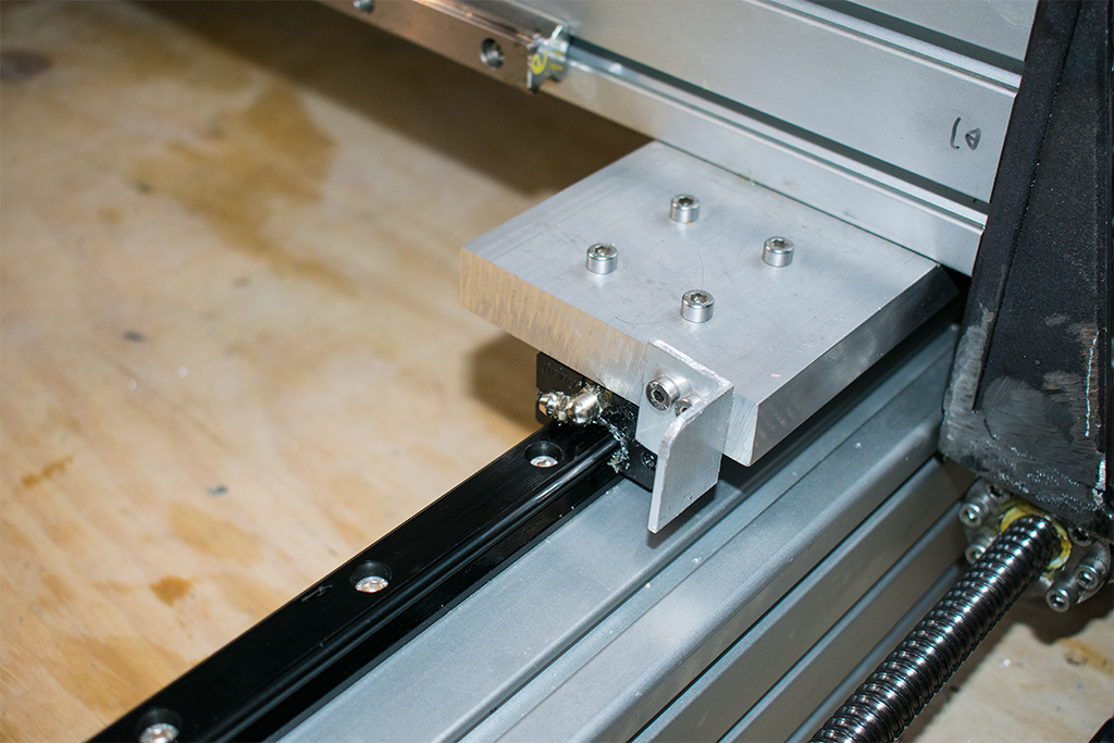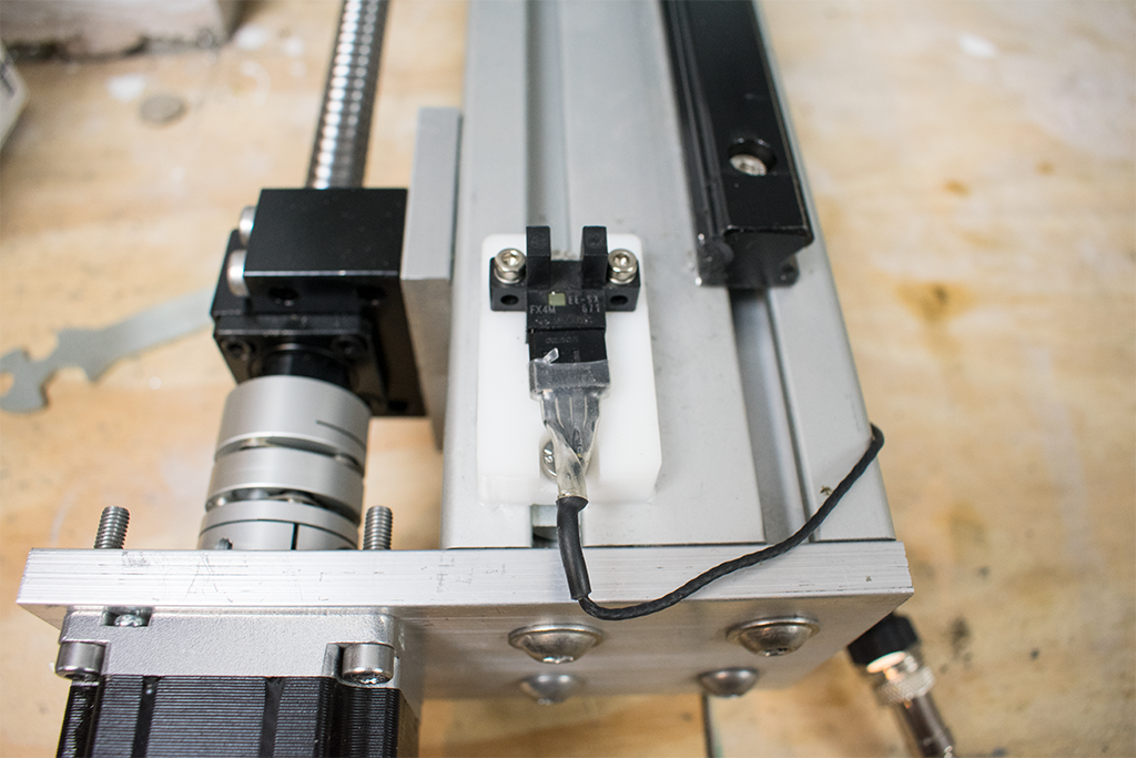 The plates which mount between the Y axis bearing blocks and the gantry were modified to fit a piece of aluminium L profile, this moves into the optical switch when homing.