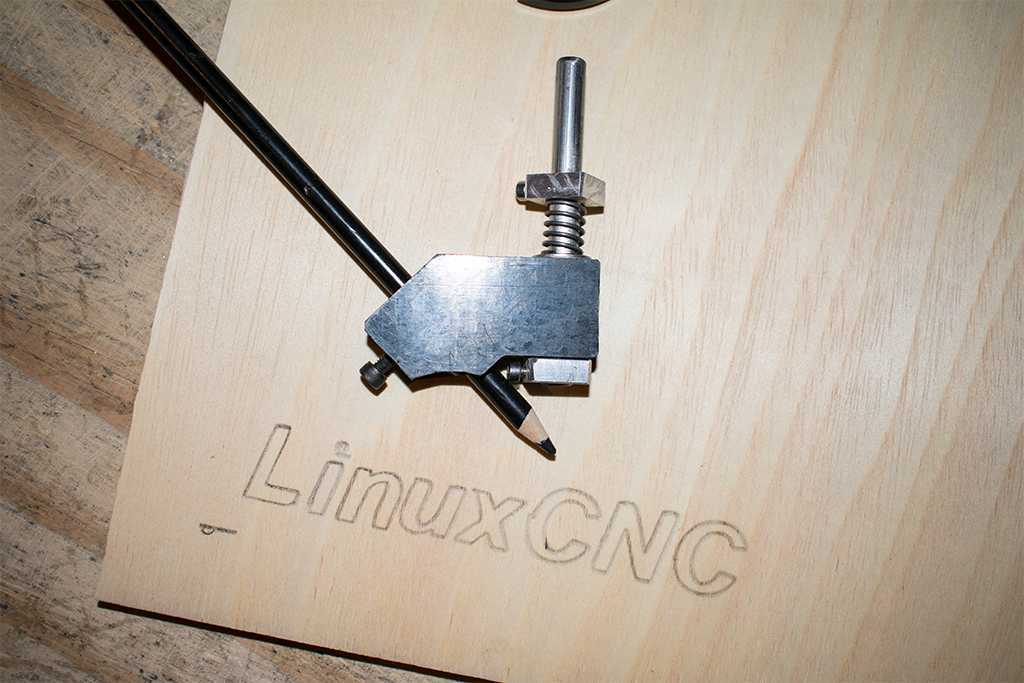 As a test, I knocked up a pencil holder out of some delrin and some drill rod, with a spring for applying pressure and for accounting from deviations in the surface. It worked great, but the chinese ball-screws really aren't great (noise, vibrations etc.)