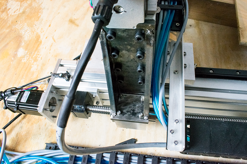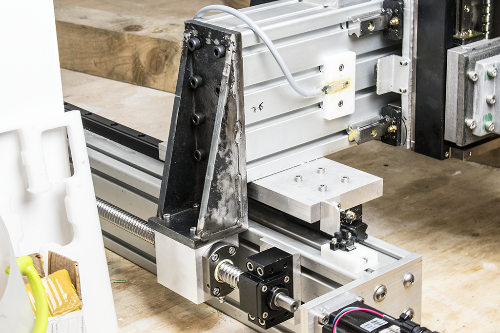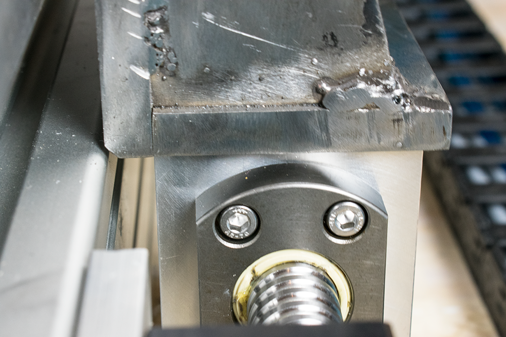 This morning two custom ballscrew nut mounts arrived from the CNC service, they came out really well so I followed on to test fit these and the newly welded (ahem) brackets. Click image for larger version.