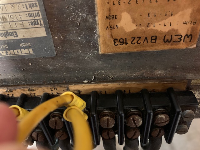 Just had a play with the transformer, with 240Vac through the 380V terminals it gave secondary reading of 95V on each and 190V across both... could be usable?