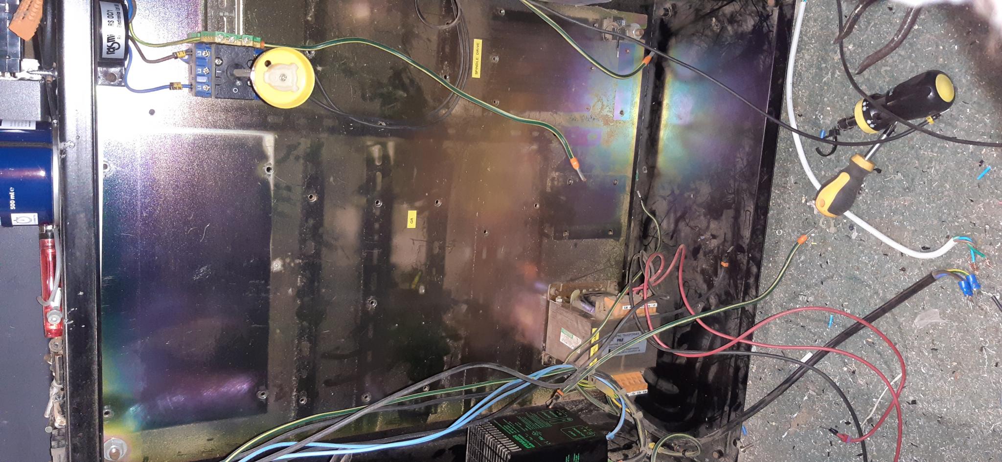 Progress after day 1. I have identified the X,Y & Z stepper cables and will identify the home switches later. My plan of attack is to disconnect and remove everythng that isn't going to be needed like the old Danford spindle controller. Hopefully I will just be left with the original power/relay/fuses (I did say hopefully)