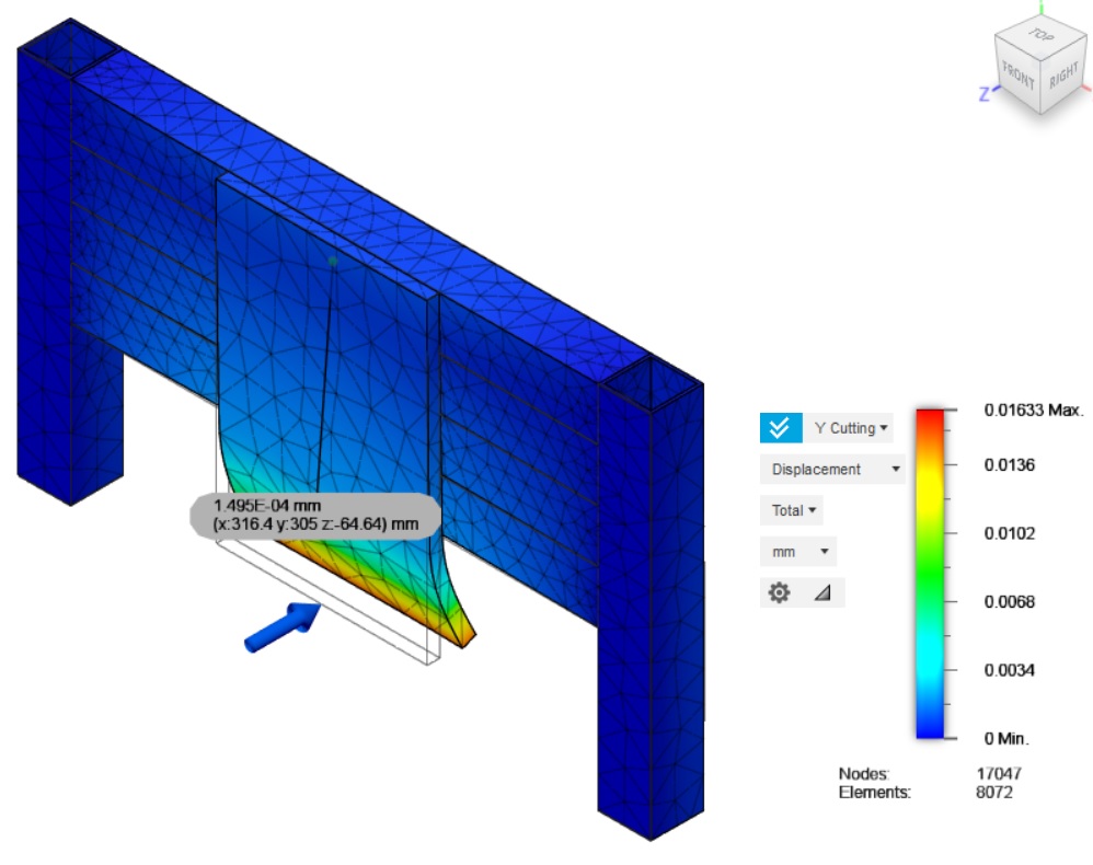 The FEA software is Fusion 360, it is really nice once you get used to it. What kind of ballpark figures should I be looking at for in the deflection analysis ? At the moment I'm not actually taking figures as real world numbers, but more to compare the deltas between different designs.