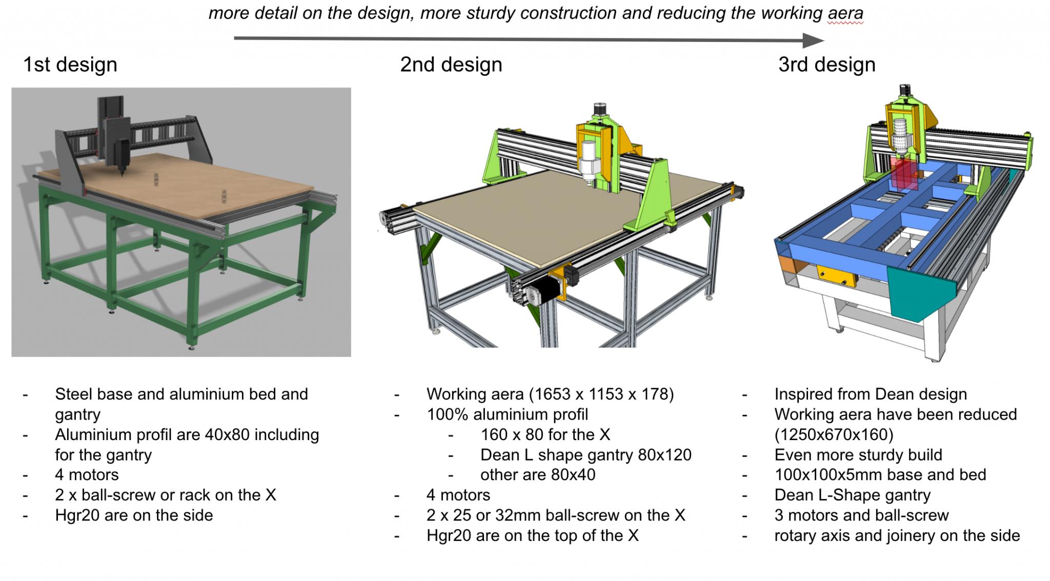 After reading a lot and a lot of thread ! It is time to share my project ... I am a woodworker hobbyist and the machine will be 80% intended for wood panel and hardwood (occasionally aluminium if the machine could handle it). So the precision target is about 1/10 to 3/10mm and free speed likely 10m/min. The machine need to be taken to piece to go through a door and the elements could be carry without machine. I would like to use the table of the machine as workbench when it is not used for this reason I am not going on a canyon type of machine.