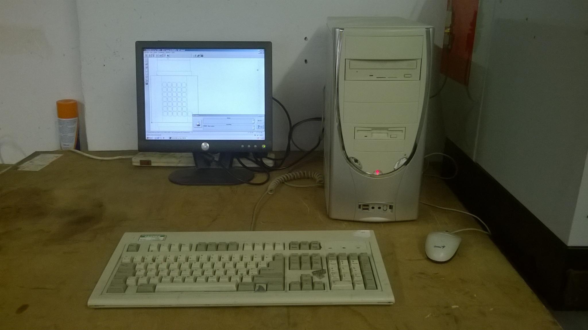Computer with windows ME, flat screen monitor, keyboard and mouse.
