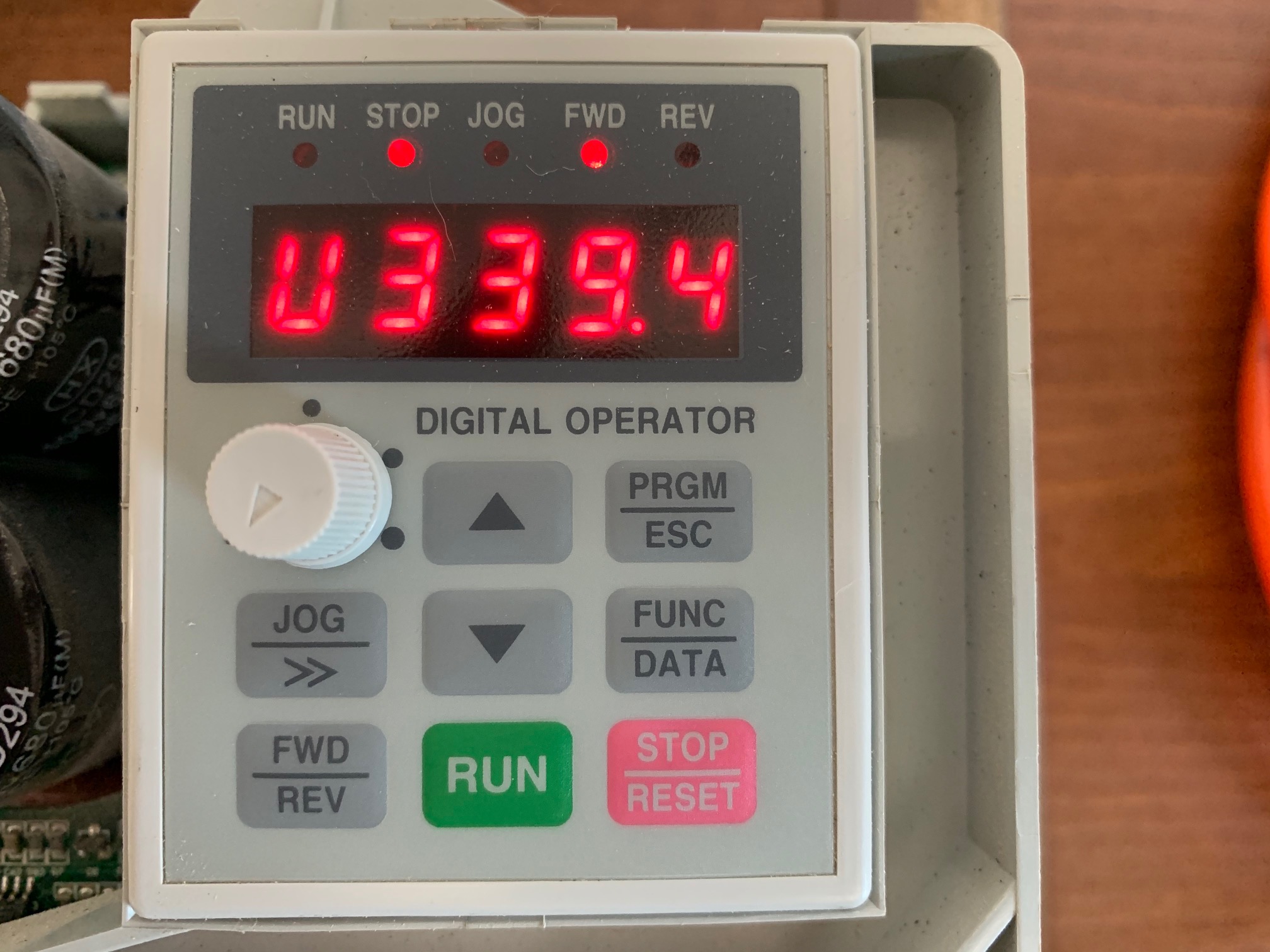 To get me started I am quite happy to just control the spindle from the controls on the Inverter, I therefore connected the Inverter up to the mains and powered it up thinking I would just be able to press run and away we go, however nothing is ever this easy!! needless to say the spindle didn't run, hence this post.