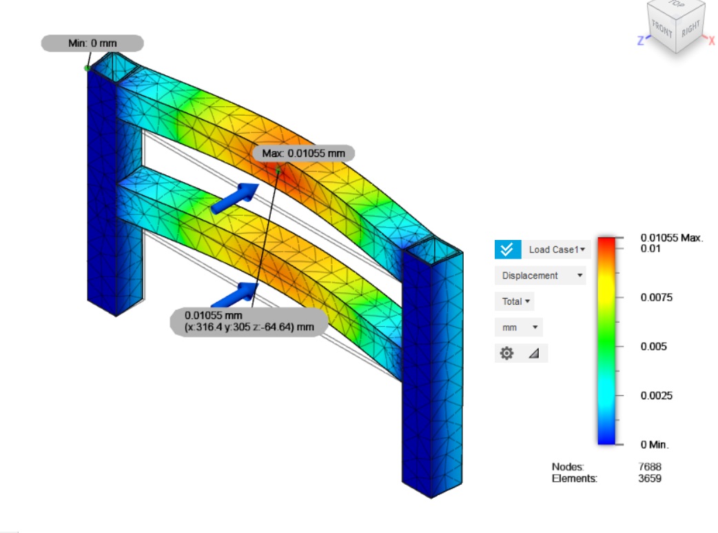 3.The displacement figures seem to suggest the material (50x50x3) is suited to the task- 0.09 to 0.07mm displacement under 100kg seems perfectly acceptable to me unless I've missed something ?