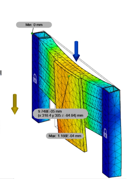 Design C: Max displacement of 0.08 mm under a force of 100Kg