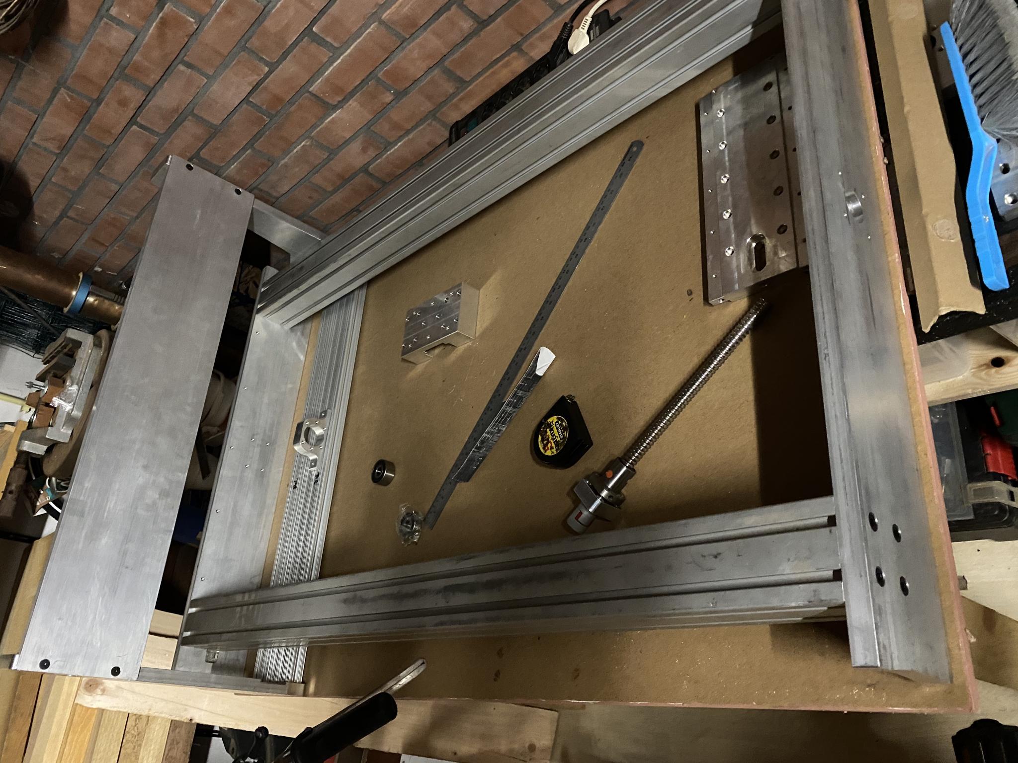 To spice things up and help draw some interest, here are a few shots of what I have - I've put together the gantry and base (just bolted it up, no loctite, no attempt to really level or line things up) just to get a sense of the size of the whole machine, and to get accurate measurements of the clearance between the 8080 profile and the gantry sides to figure out the required linear rail bits and pieces. Once I've got a little further down the road I may start a build log to document things for my future self and simply for fun, and to get some input if/when I get stuck along the way.