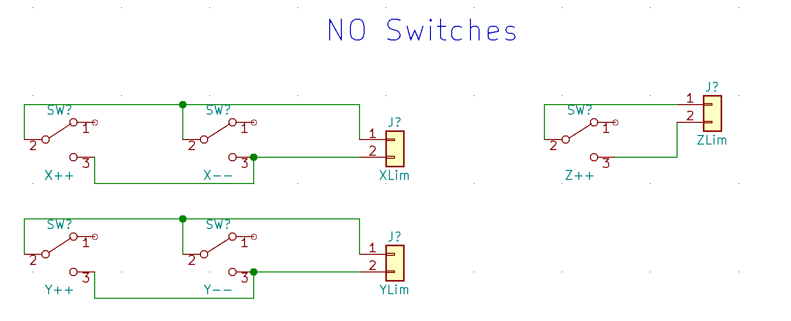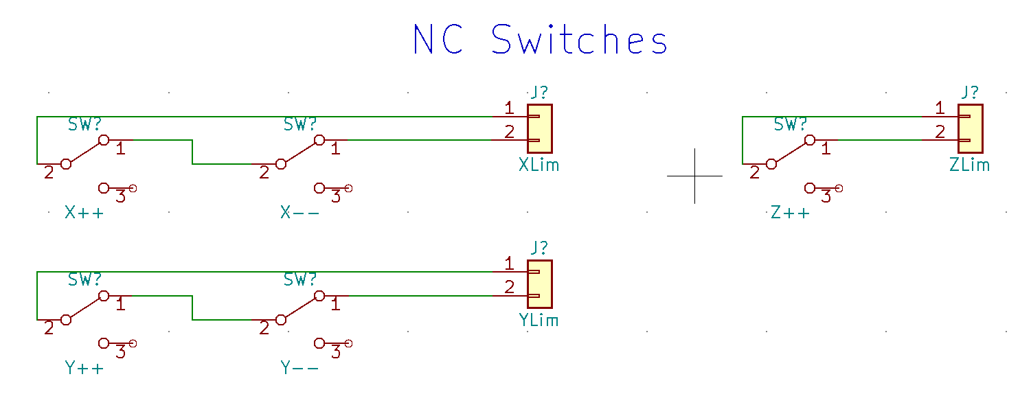 If you are using NC (Normally Closed) switches, connect the axis switches in series and to the relevant connector.