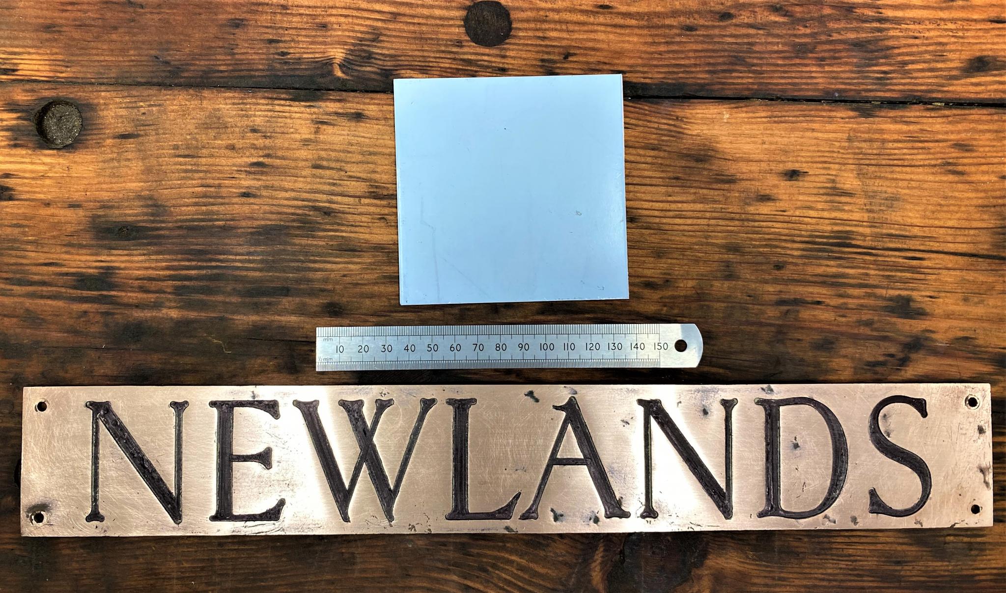Before we demolished the garage, I found the original house name plate. It was engraved in copper and filled with an enamel/epoxy-like material.