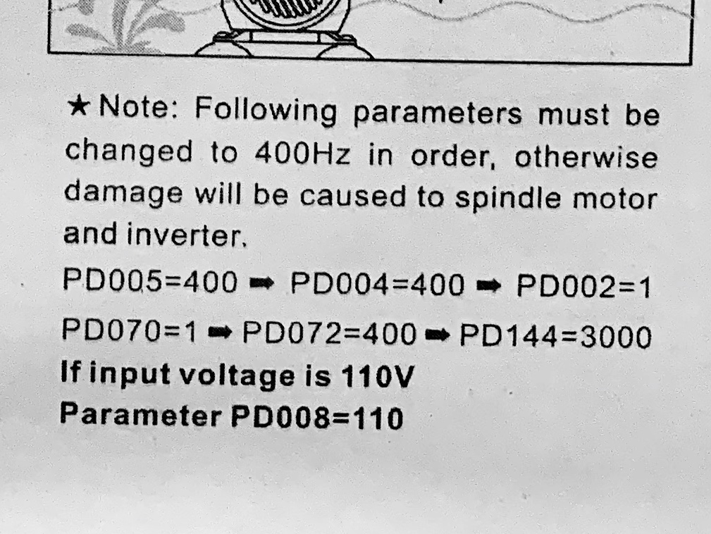 2. Huanyang provides very very basic instructions and says that parameters PD005, PD004, PD002, PD070, PD072 and PD144. It’s says that they must be changed to 400hz in order. The. It lists values for each PD. Anyone know how to do this on a Delta VFD? See the attached for the specific instructions from Huanyang