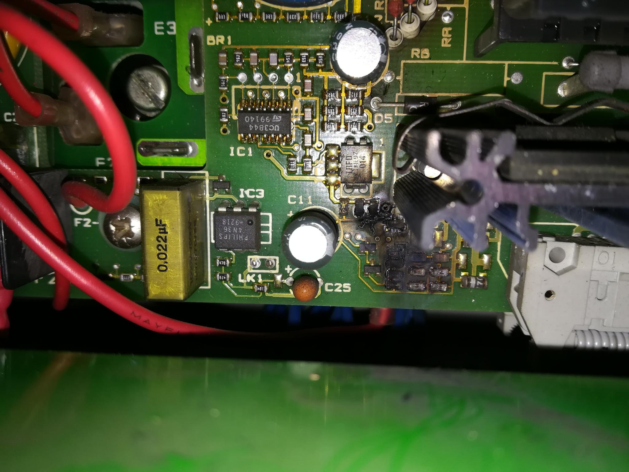 Thanks very much for taking the time. Appreciated. The picture, to me, looks worse in the picture than in real life. None of the copper traces on the pcb look blown, but I could be wrong. I was thinking about cleaning the burnt area with 99% alch and see how it looks then. I do understand your point on caps. I would imagine that schematic diagram for MENTOR II DC drive is going to be impossible to find. I found a place that can repair / replace those boards at 700£+VAT but my worry is what caused the problem in the first place. The last thing that I want to do is to advise someone to send that DC drive for repair and than it turns out that something else is causing the problem.