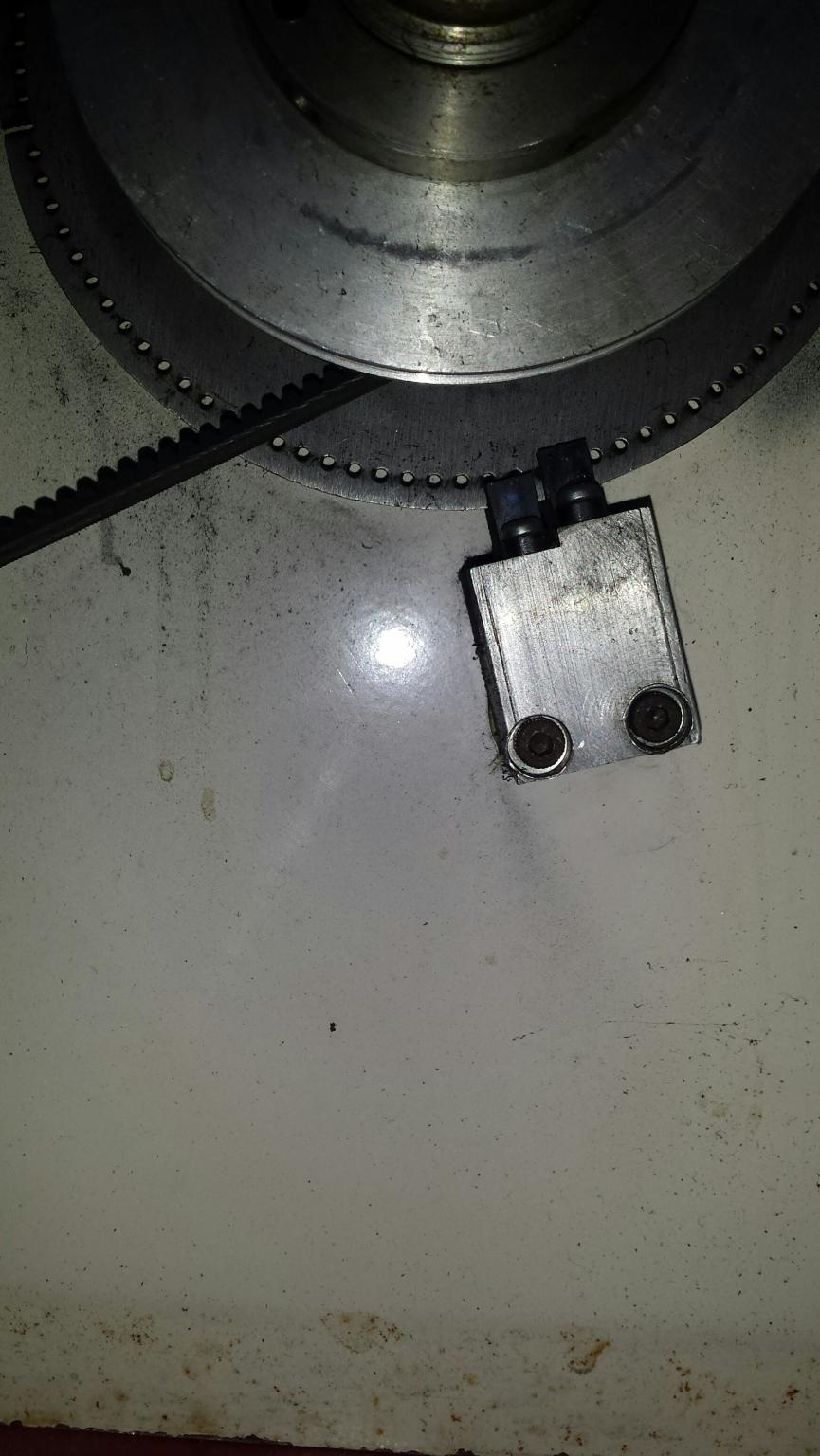 Door to spindle drive belts seems to have 3. A button switch at opening end seems to have been disconnected, ball switch at hinge end has two microswitches.