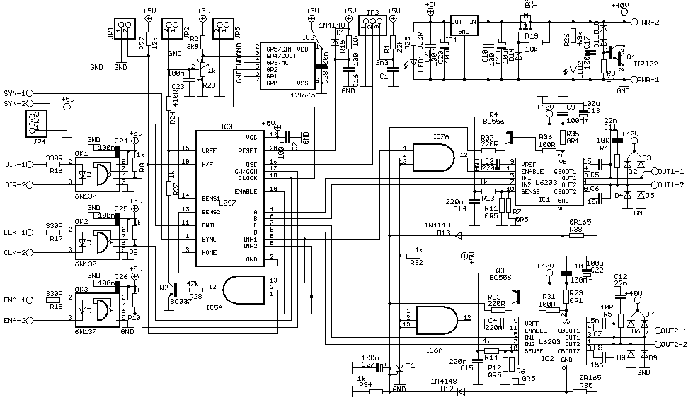 Im looking to build a new stepper driver for my mill project. The original board used an L297 driver and 2x L6203 H bridge output stage. I'm hoping to build something similar and have found a few circuits on the net.