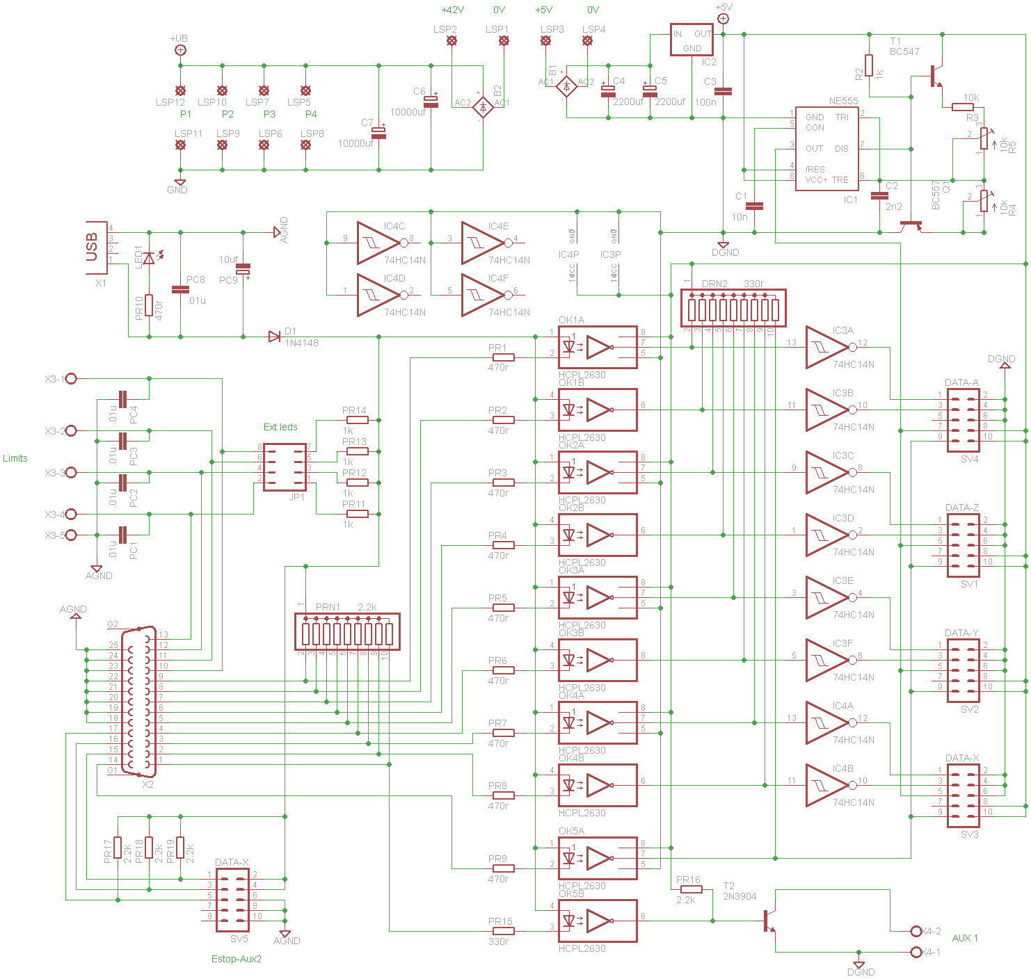 Heres the latest version of the BOB, think I've got a bit carried away and may have to bring it back to basic's. maybe put the 4th axis and Aux1 on a separate board as well. I'm a bit worried that ive mixed up the values on the optos and inverters so wont get the correct voltages :whistling: