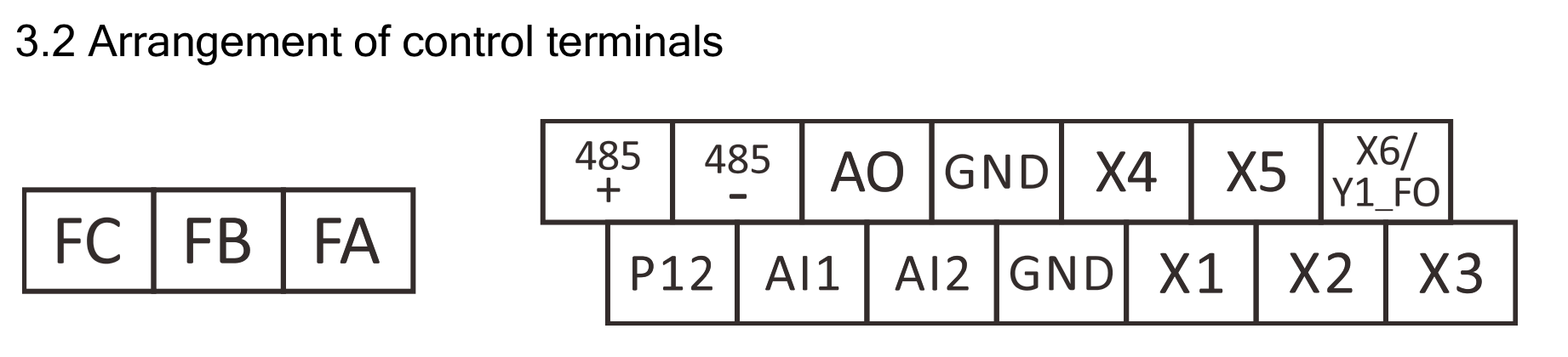The next row, the multi-core cable (black sheath) - red core is connected to P12, The Black connected to AI1, and white connected to GND - This is the 12V (red), Gnd (white) and Analogue voltage (1) - AI1 - clearly intended for speed control. So, where's the other end of that multicore cable plugged in?