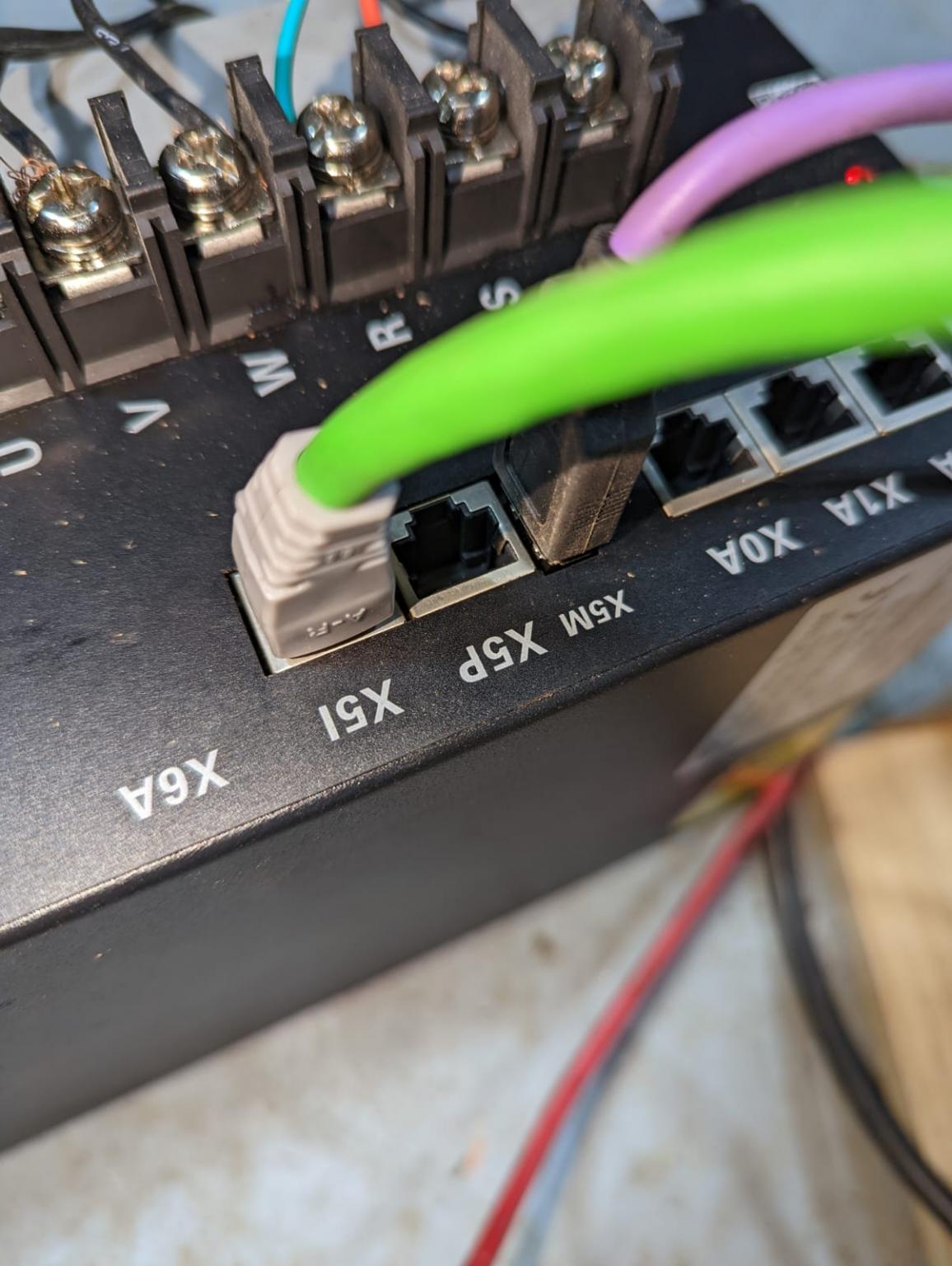I spotted in the manual that X5P = encoder OUTPUT, so I investigated further. X2A it is. I'm not sure why there is an X5 number on the cable.