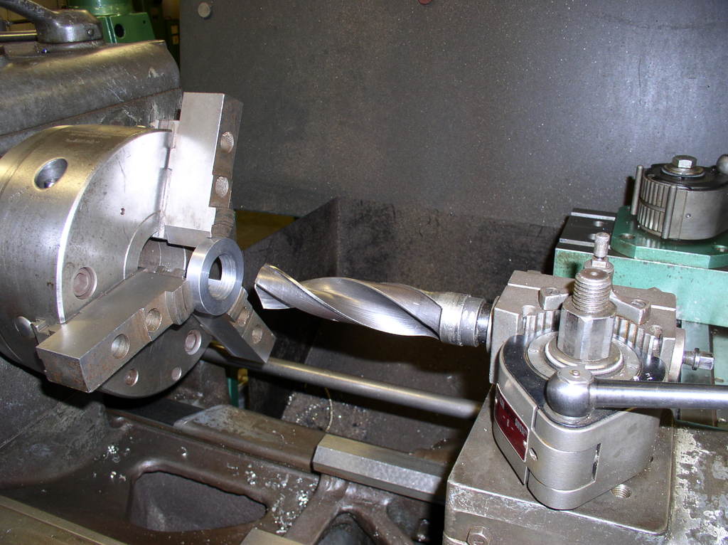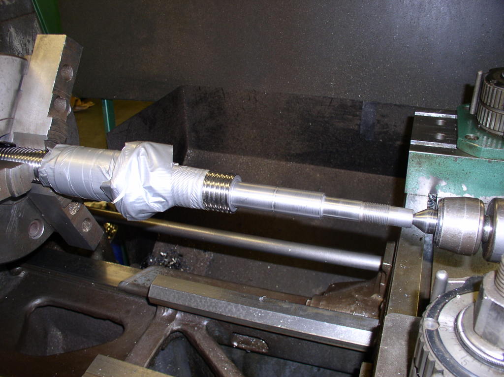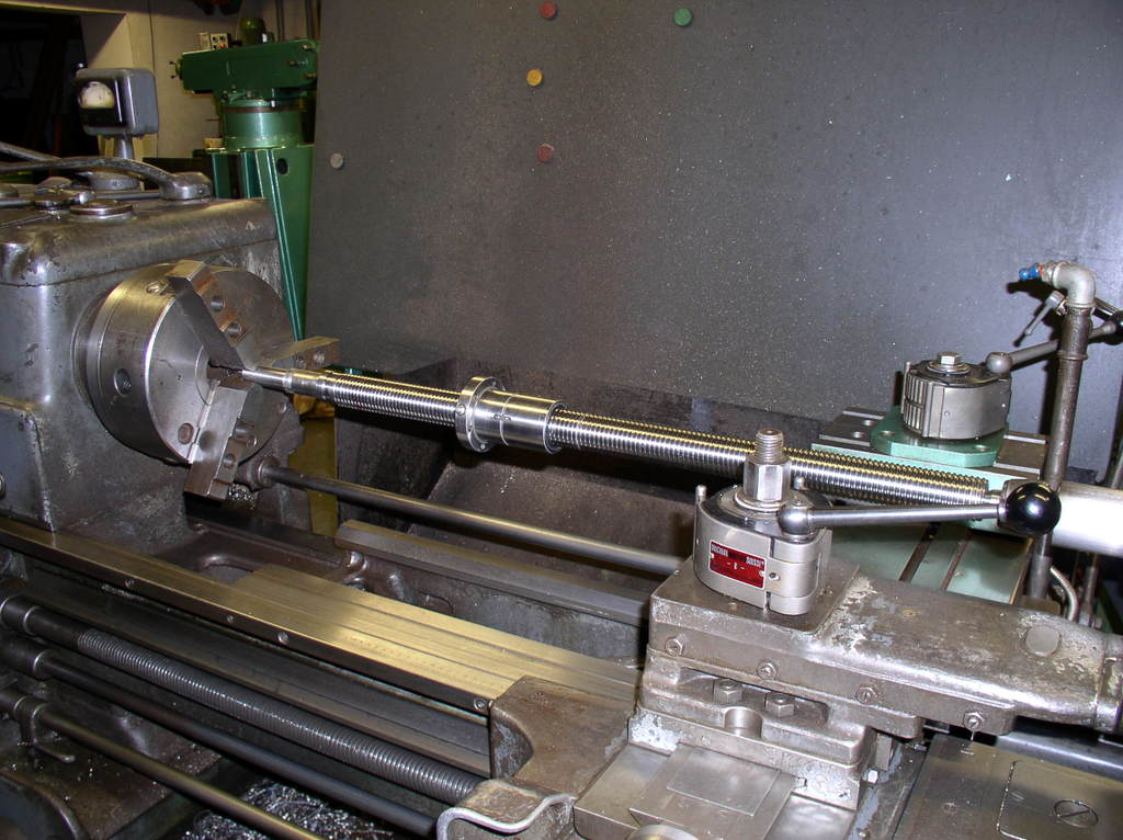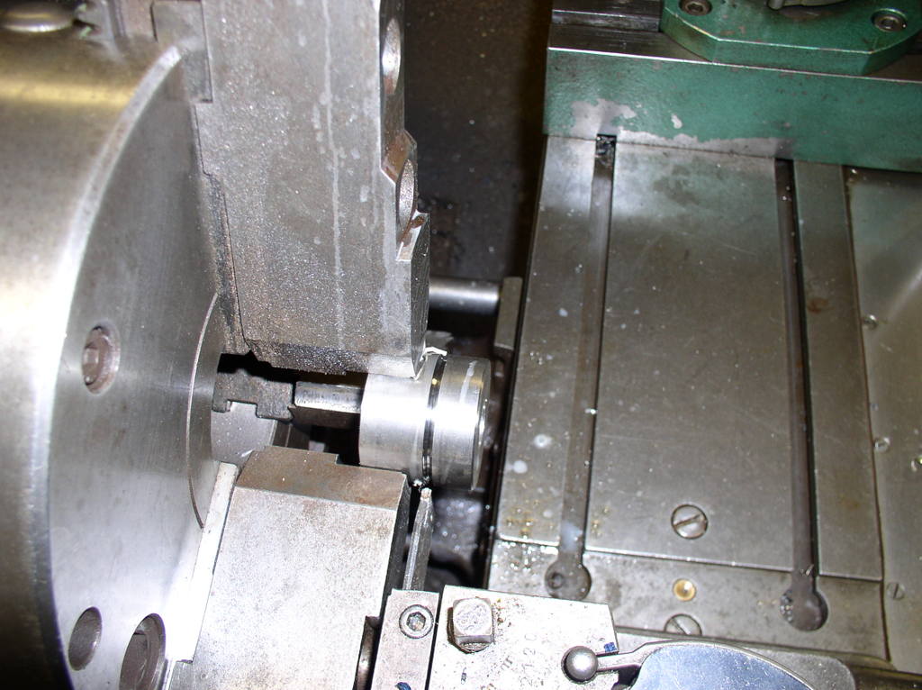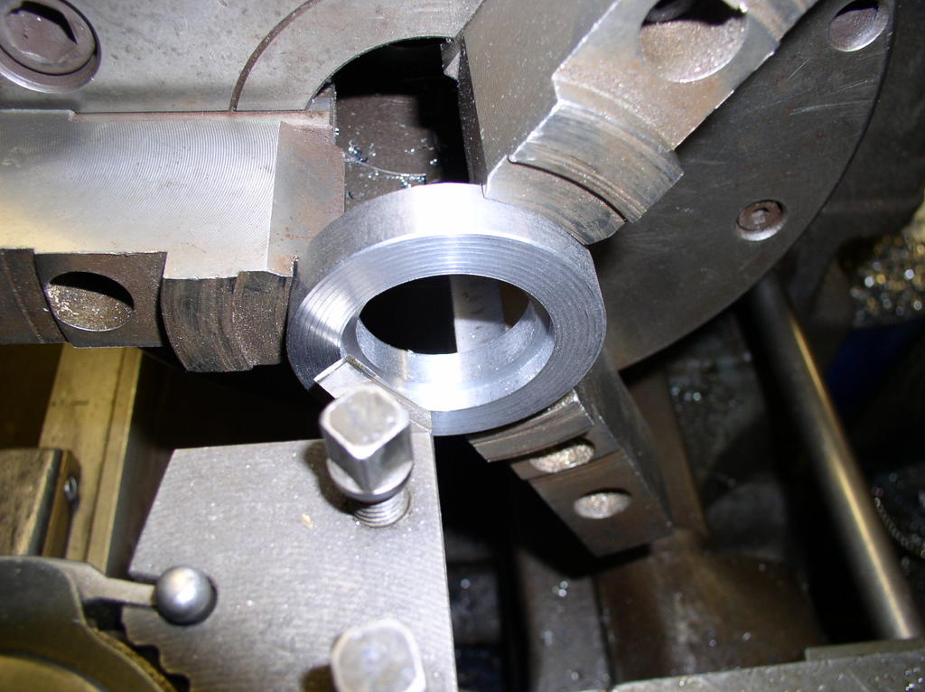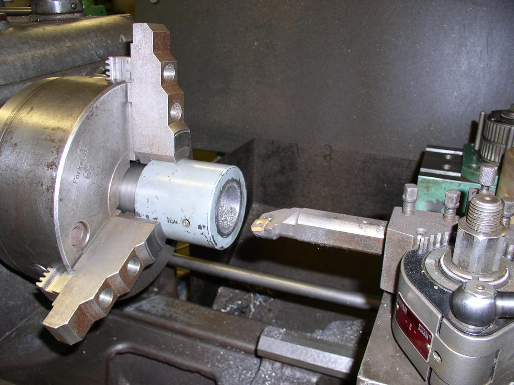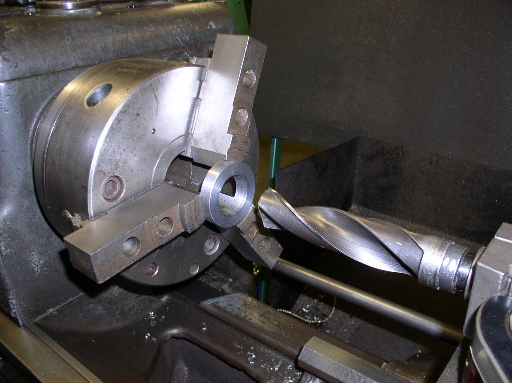 But first I have the chuck jaws to suit the ball screw,I have a number of different sizes of washers to put between the jaws to support them during turning .I turn them to the right dimension in this case 40 mm so I will not damage the part. After cutting off the exes material I make a new center whit a center drill.