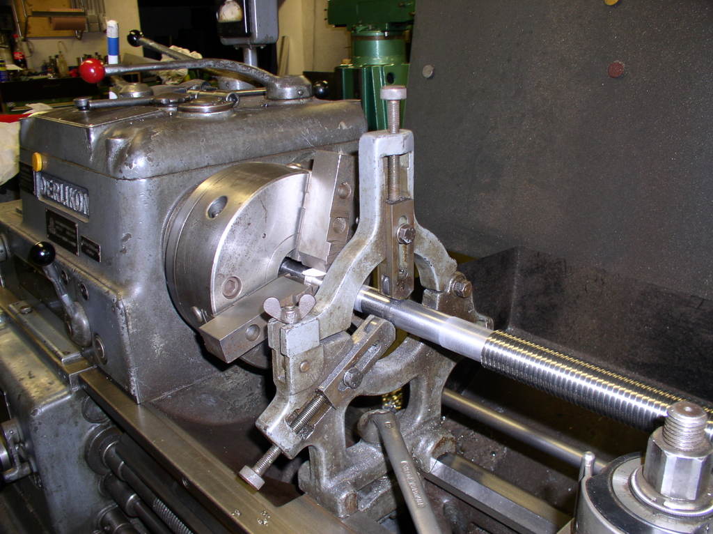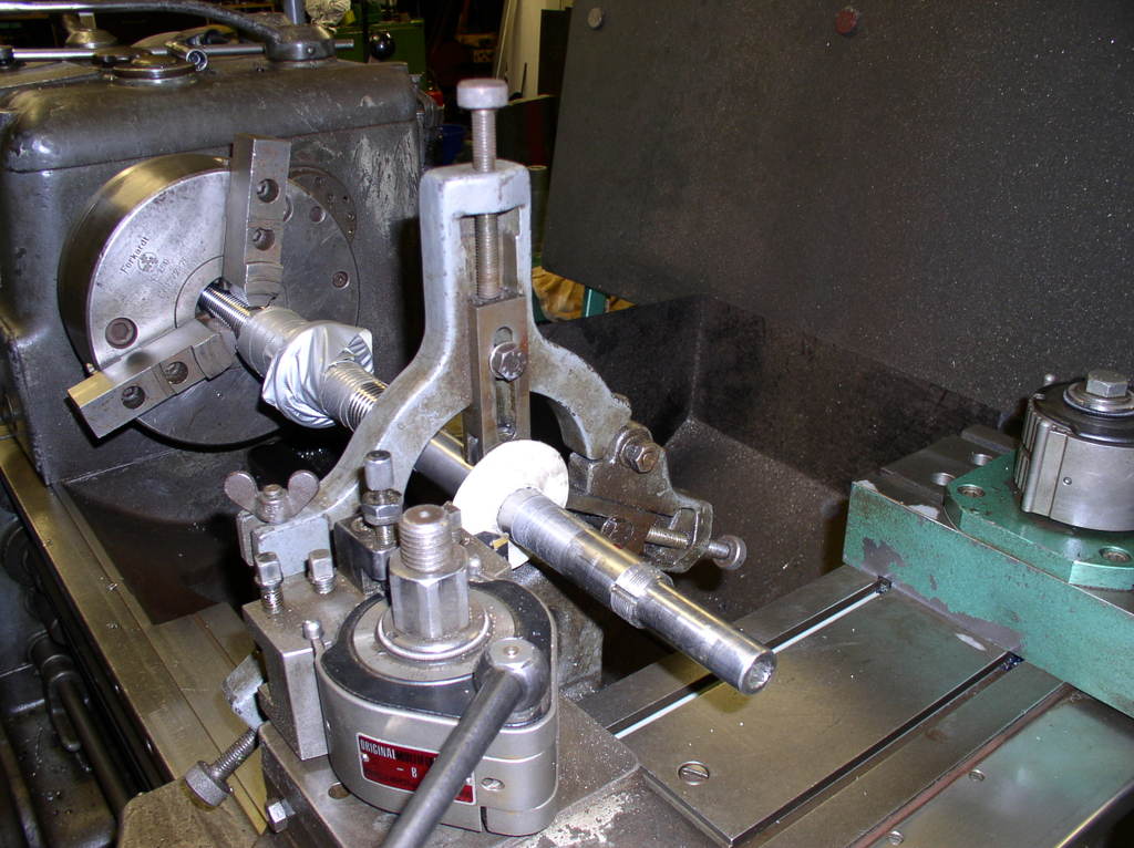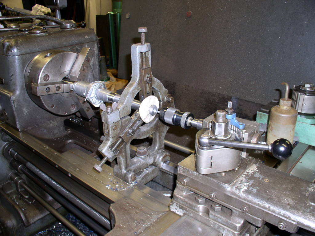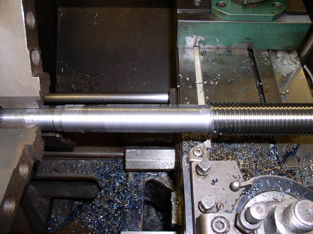 Then I removed the steady rest and the finished part and Put On Some tread for the nut and make a groove for a circlips I am using a caliper to measure the tread