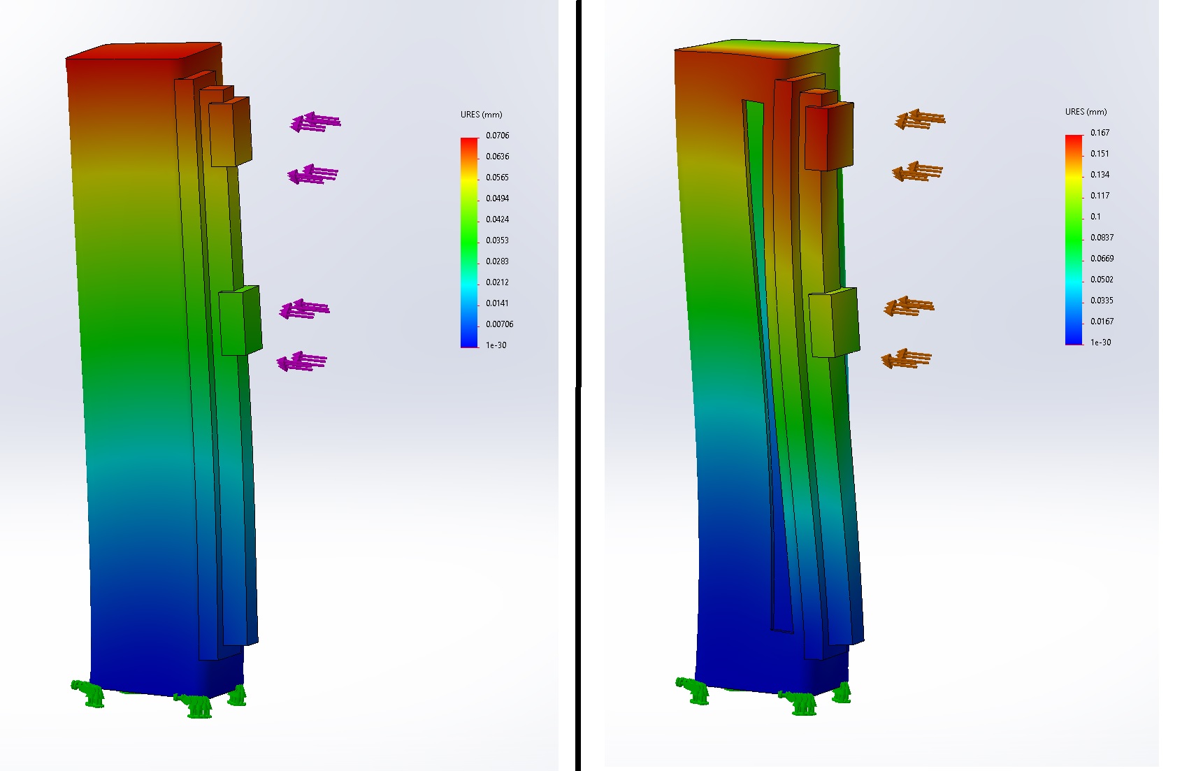The absolute value of the deflection (and the absolute load) is not the point. The point is the comparison between slot and no slot under the exact same conditions.