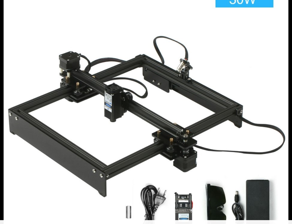 I bought it as a lockdown toy and it cost £199 from CZ republic. I don't believe 30W from the gun as the power supply is only 12v 5A and it has to power the motors as well - we shall see. The machine came as a kit with a fixed focus laser module, so to get the focus at 20mm you would have to prop the workpiece, which I did not like.