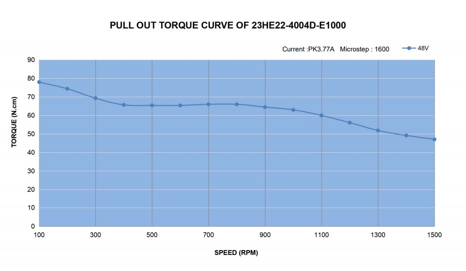 0.8Nm falling to 0.5Nm at 25 rps, I could get anywhere in the machine envelope in just 12 seconds. Maybe faster, they say it can do twice that before it clacks out.