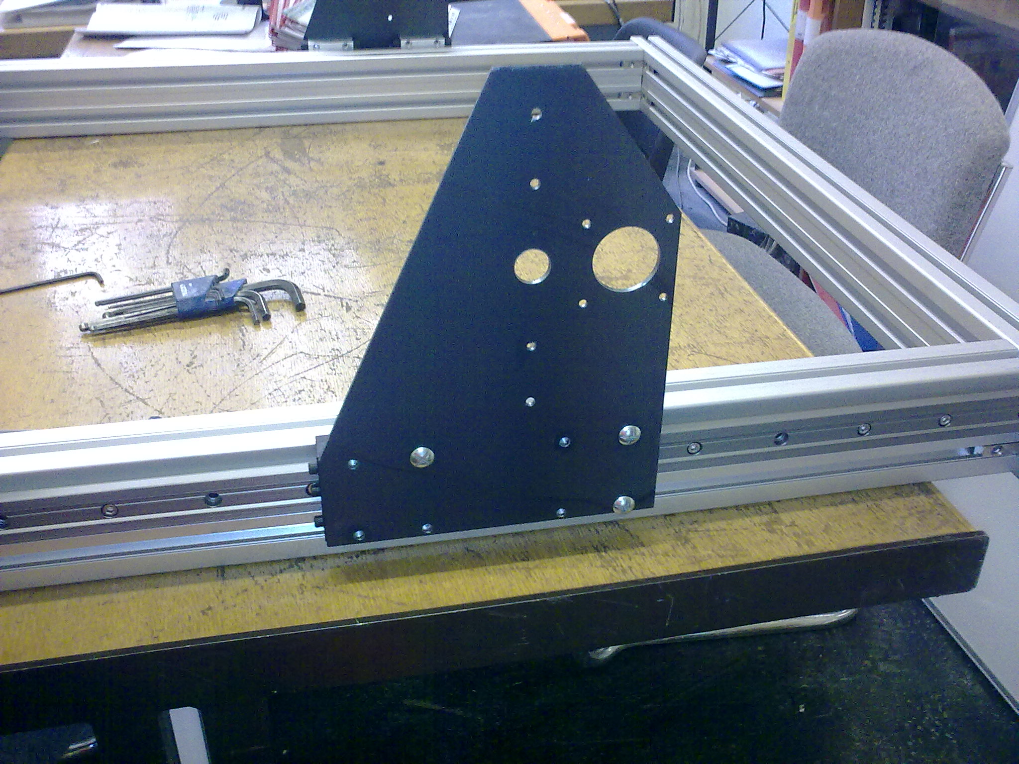 im currently waiting for some 45x45 alu profile and the plan is to have two vertical sections bolted onto the alu side plates then, two long pieces across forming the y axis. im also planning on mounting the y axis motor on the inside and using a pulley to attach to the screw that will go down the middle of the y axis.