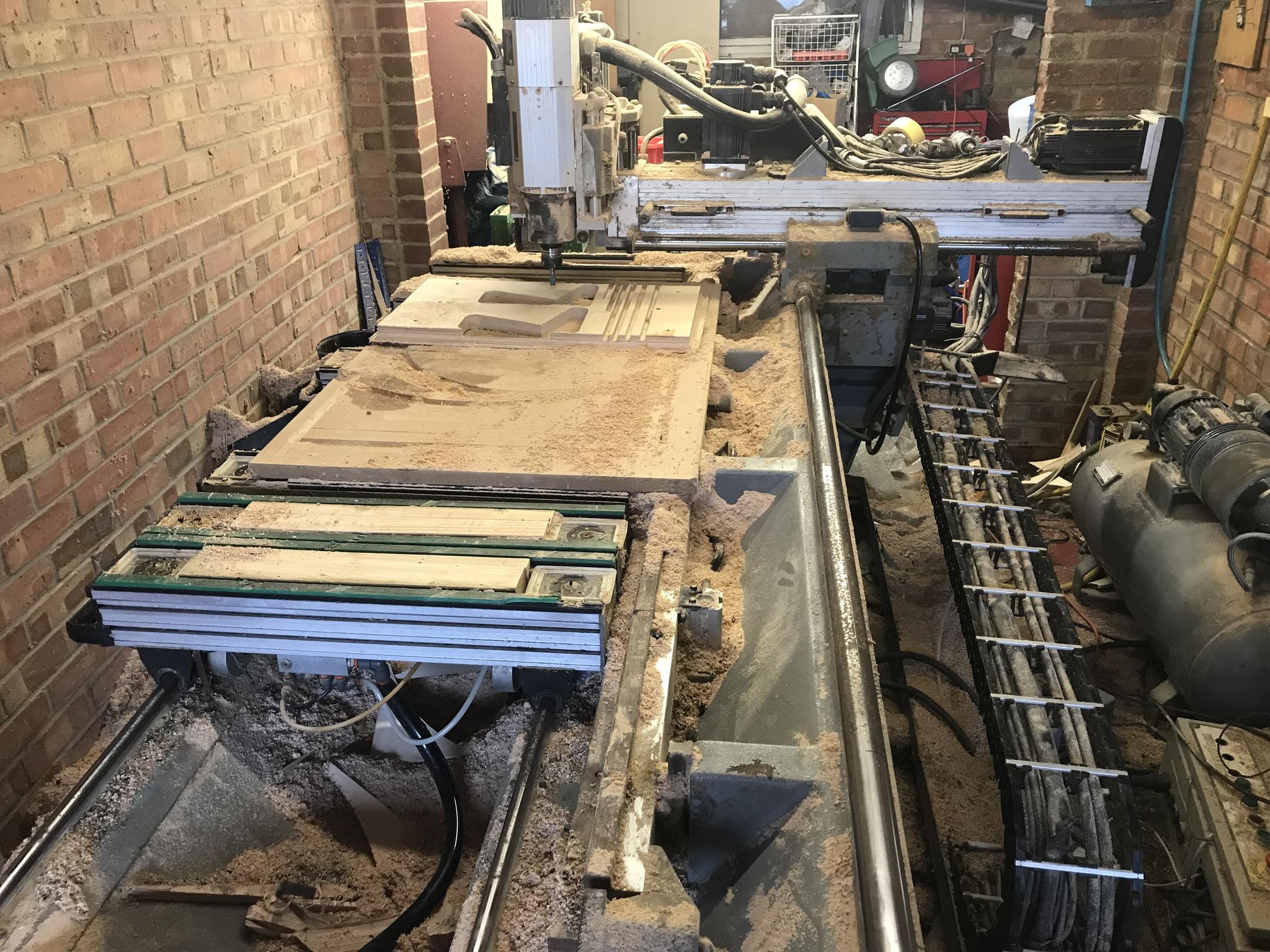 There is fantastic potential with this machine I got it to where I could cut and make money. It could be taken much further with all the extra drill heads actuate and the saw head. I will include all the tooling 15 tool holders in total all ER32 as well as a load of new and used cutters. I transported it on a twin axle trailer all the way from Manchester to surrey and it was fine. Without the original control box it is much lighter.