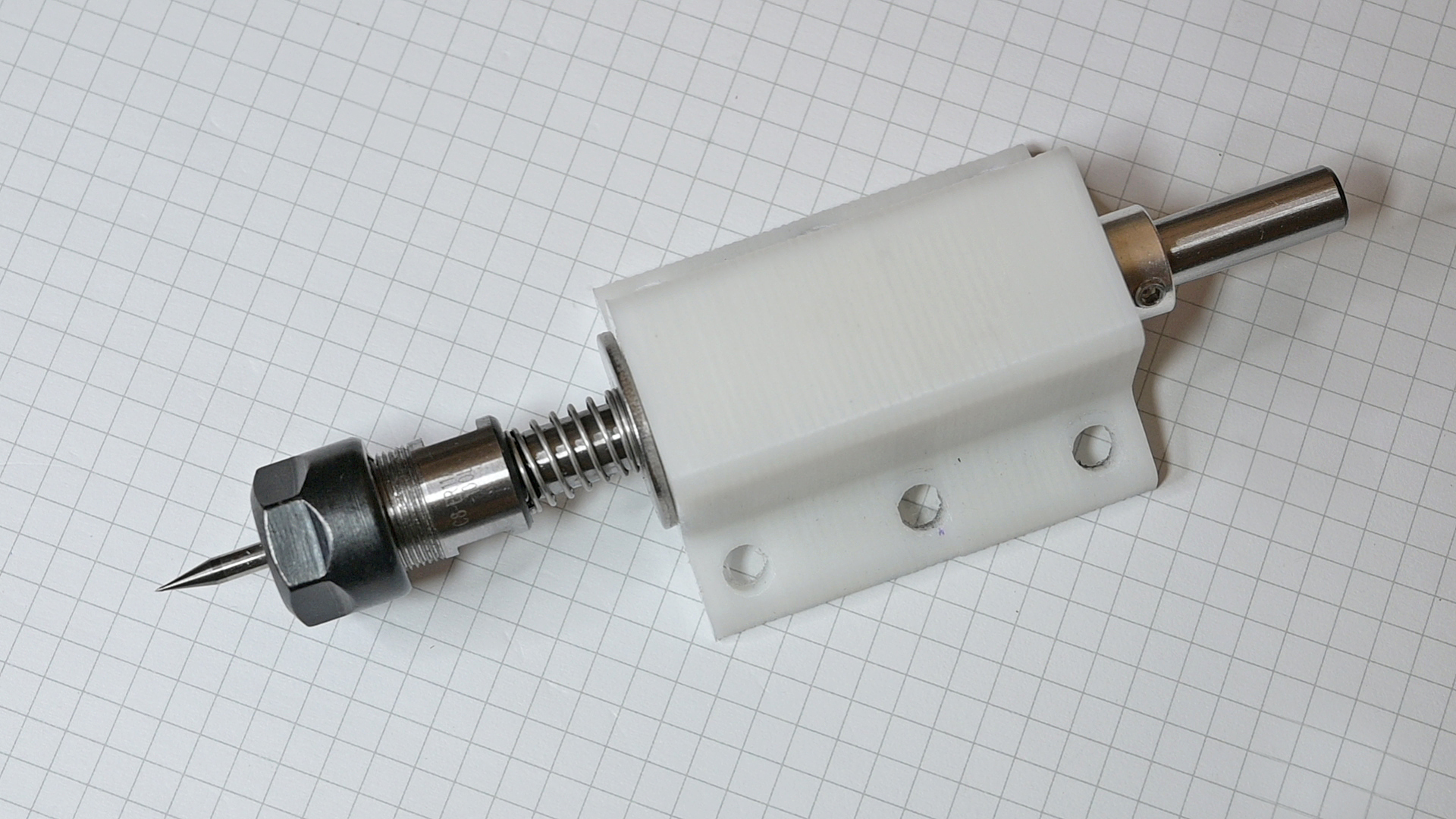 A few weeks ago I had a discussion on another forum regarding spring loaded engraving vs drag engraving. I opted for DIY drag engraving, instead of DIY rotating spring loaded one for several reasons, one of them was the simplicity to make these as well as the usability. I decided to make one through using simple parts I found in my drawers. Everything went very fast, except the 3D printing which took 4,5 hours to finish, but after that, I had a very nice tool, which I find a lot of use of whenever I feel I need to engrave fine lines of text into any material in the future. So far I have only tested with acrylic, aluminium and steel but since it works fine with those, I guess it would work fine with anything in between as well, which might be soft plastic and brass. I don't think it works on wood, that needs a rotating cutter. Anyway, I had a few broken end mills which I ground down to be engraving needles and it turned out to work very nice. I made a short video about this as well, welcome to have a look. If anyone is interested to make a copy of this, I can give more details, and can also share the FreeCAD file or the stl for the 3D printed part. My spindle is 65mm in diameter and the outer diameter is 85mm, so the files I have fits only for this type of spindle holder.