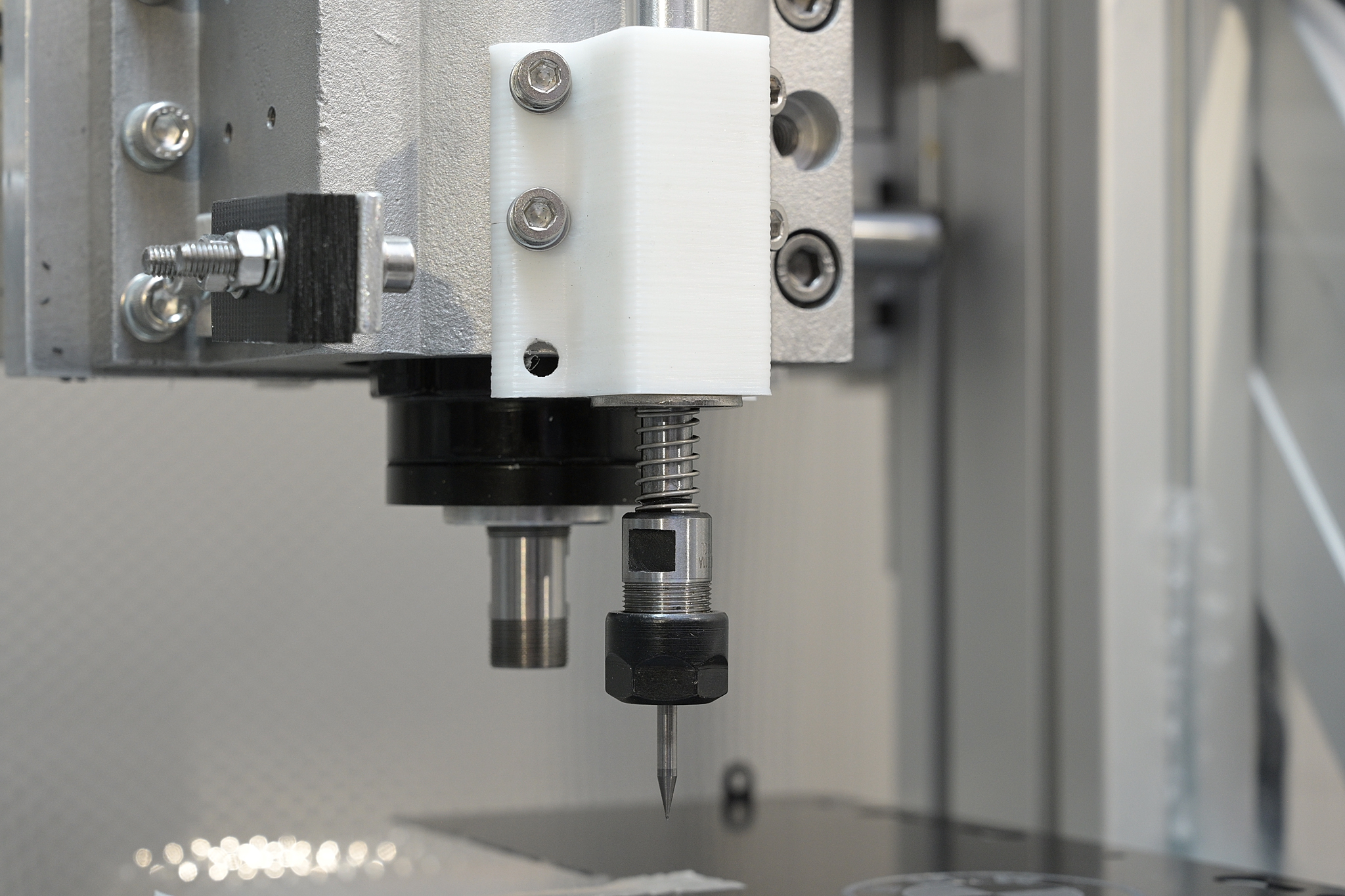 A few weeks ago I had a discussion on another forum regarding spring loaded engraving vs drag engraving. I opted for DIY drag engraving, instead of DIY rotating spring loaded one for several reasons, one of them was the simplicity to make these as well as the usability. I decided to make one through using simple parts I found in my drawers. Everything went very fast, except the 3D printing which took 4,5 hours to finish, but after that, I had a very nice tool, which I find a lot of use of whenever I feel I need to engrave fine lines of text into any material in the future. So far I have only tested with acrylic, aluminium and steel but since it works fine with those, I guess it would work fine with anything in between as well, which might be soft plastic and brass. I don't think it works on wood, that needs a rotating cutter. Anyway, I had a few broken end mills which I ground down to be engraving needles and it turned out to work very nice. I made a short video about this as well, welcome to have a look. If anyone is interested to make a copy of this, I can give more details, and can also share the FreeCAD file or the stl for the 3D printed part. My spindle is 65mm in diameter and the outer diameter is 85mm, so the files I have fits only for this type of spindle holder.