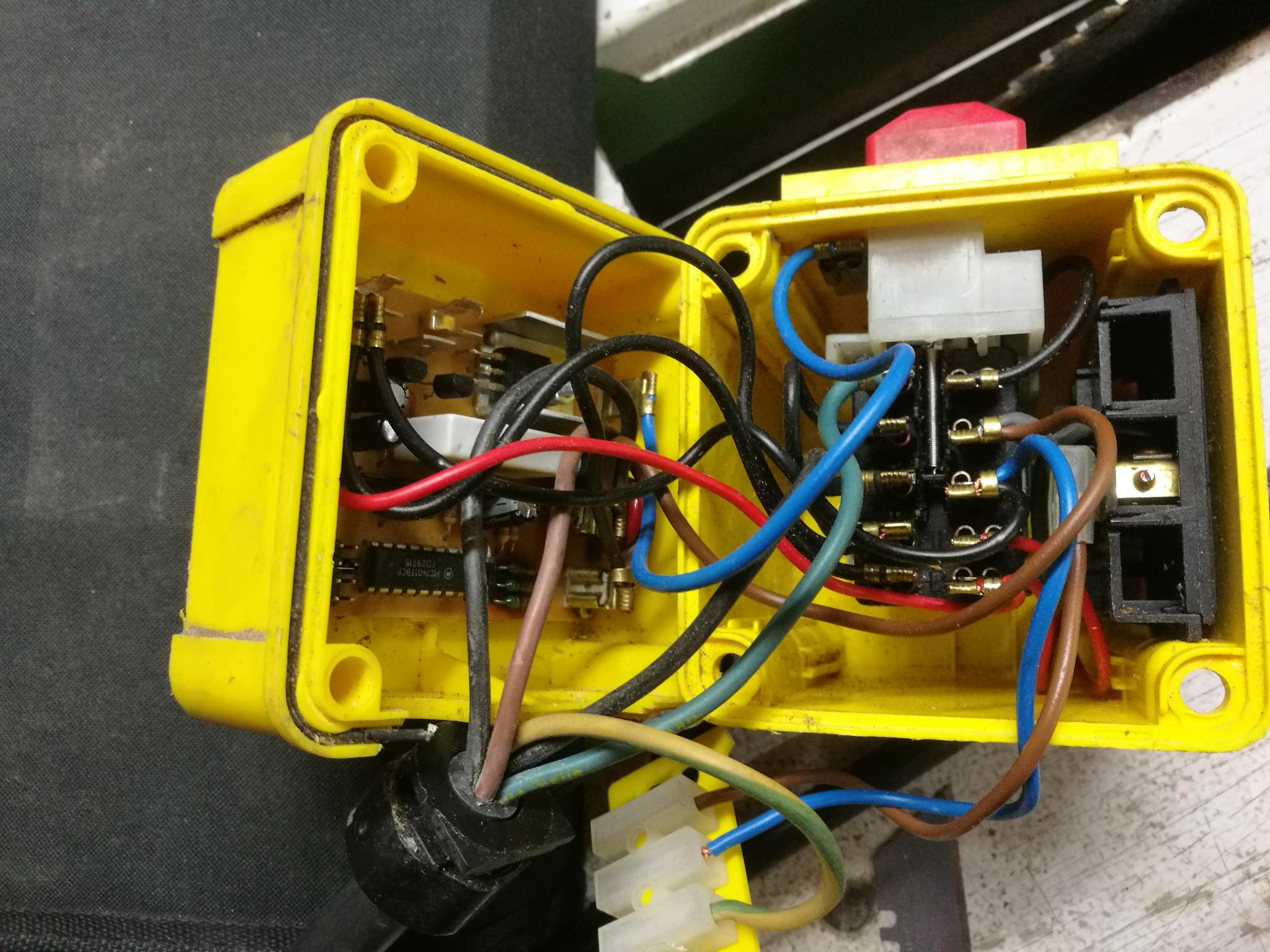 I thought it might be the switch so bought a (NVR) safety switch and e-stop. I see single phase motor with a capacitor and the cable going to the switch has 5 wires, brown, blue, earth and two black.