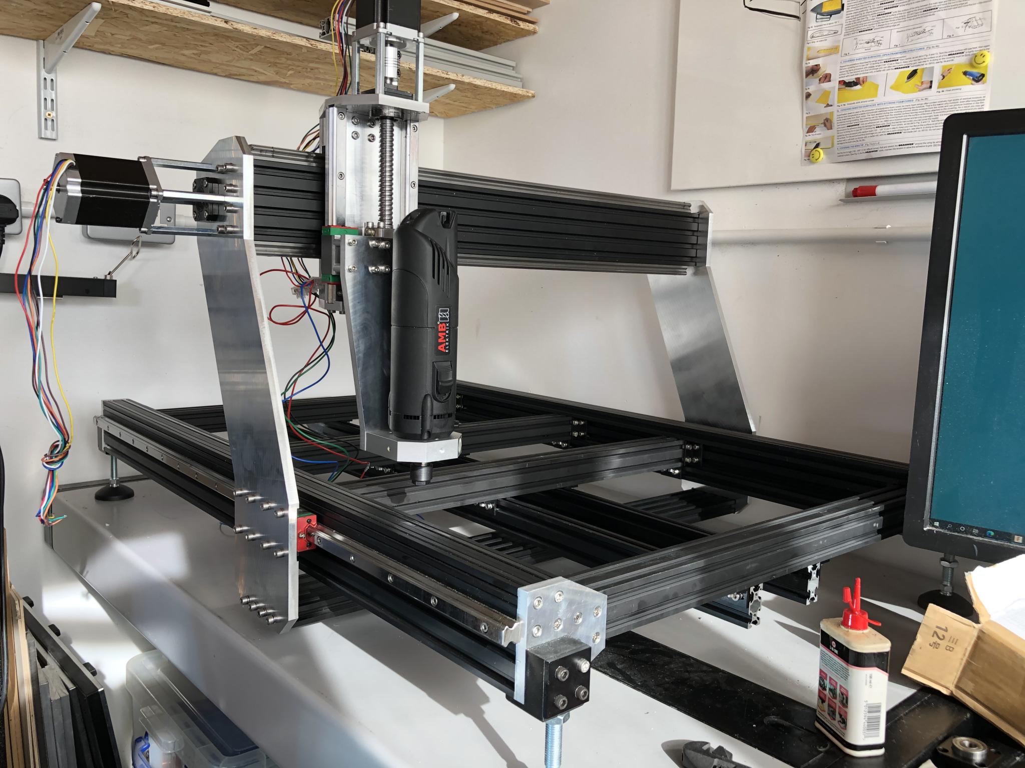 I am looking to build a CNC router to mainly cut wood / carbon fiber. I build a lot of RC models as a hobby and this this will aid in making them. I am constrained to 800mm frame width as it has to fit through a doorway into my workshop. I have chosen 1200mm length to maximise bed space. I am hopefull for 1000 x 600 workable bed space however I accept this will be limited by design.